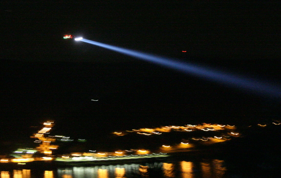 und einem Polizeihubschrauber