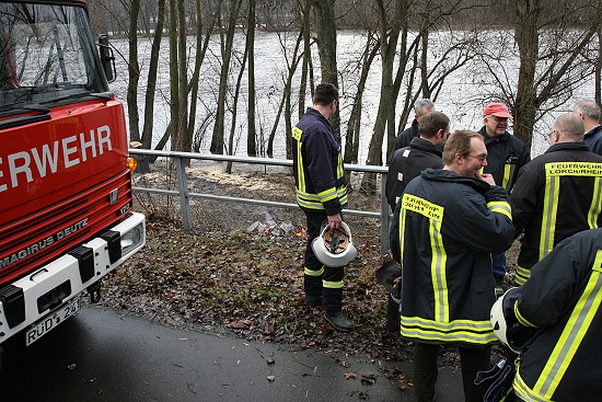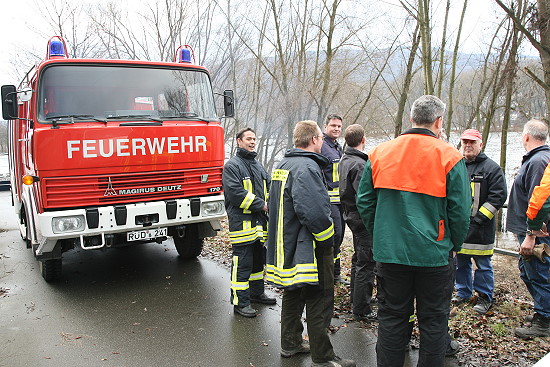 einem brennenden Baum am Rhein alarmiert. Beim Eintreffen