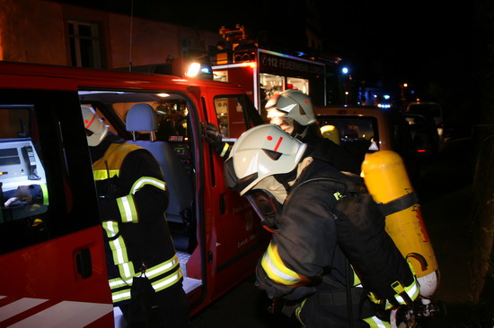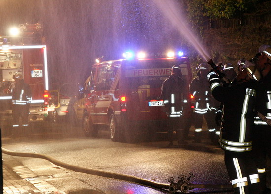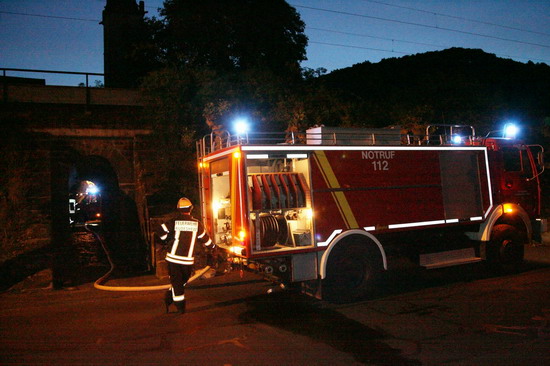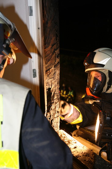 erste Löschversuche unternahm.Die Feuerwehr setzte ein Trupp unter