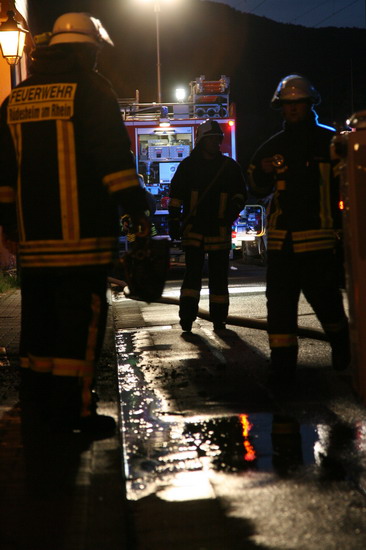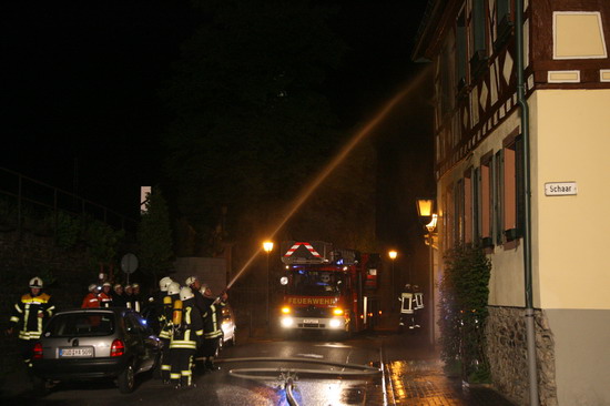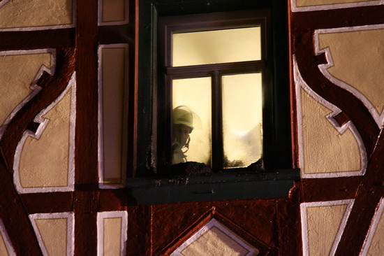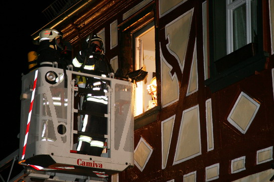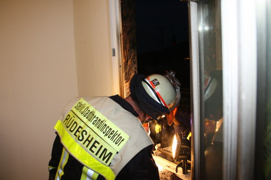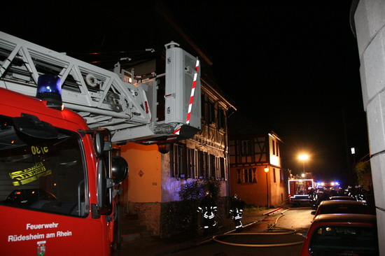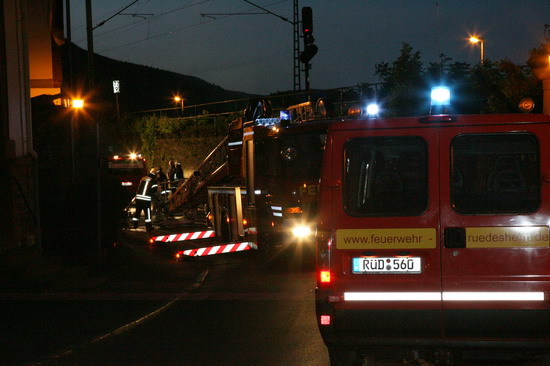 Atemschutz über die Drehleiter aus Rüdesheim zur Brandbekämpfung