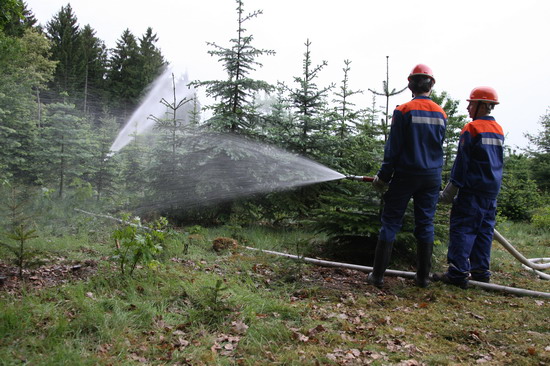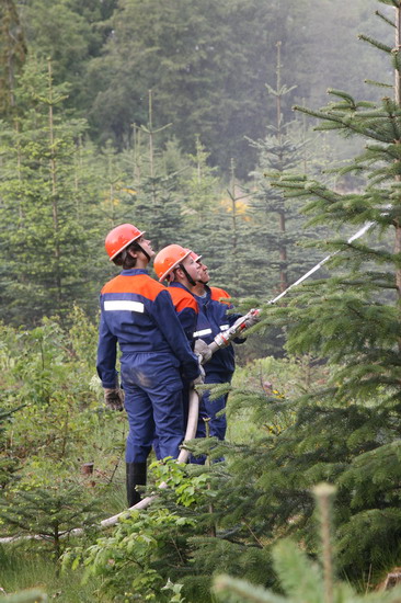 Jugendfeuerwehr aus um die neugepflanzten Tannenbäume an den 12