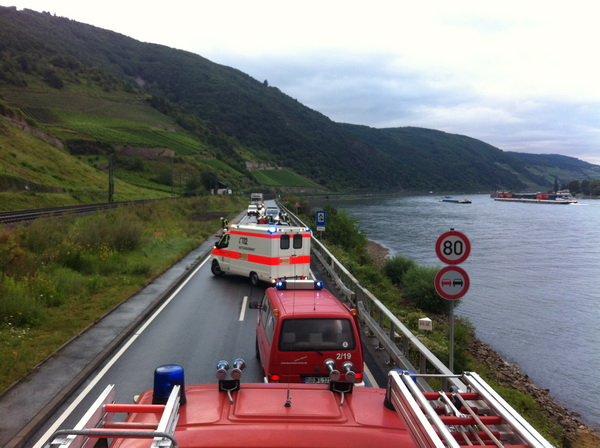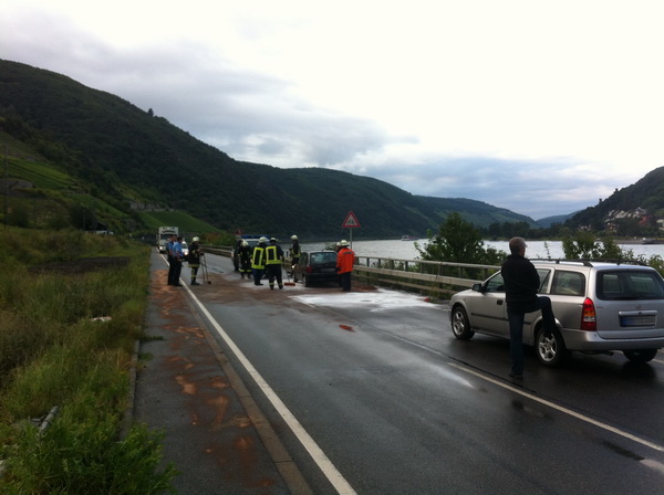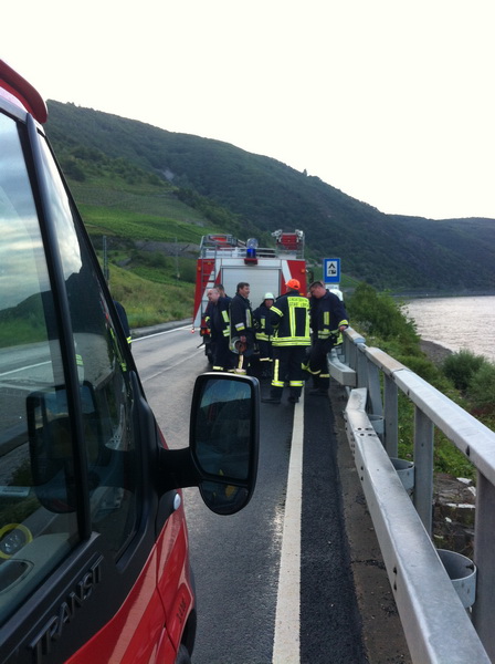 nach einem Verkehrsunfall auf der B42 alarmiert. An der