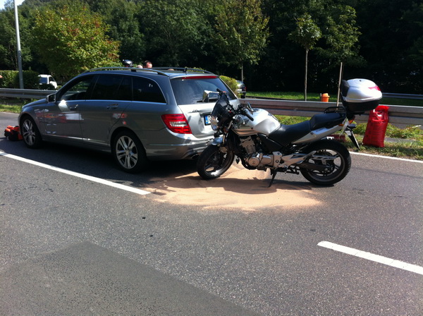 einem Motorradunfall auf die L3033 alarmiert. Die Ölspur wurde