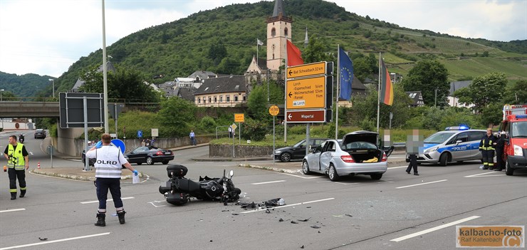 wollte, ein Motorrad übersehen. Die Feuerwehr unterstützte den