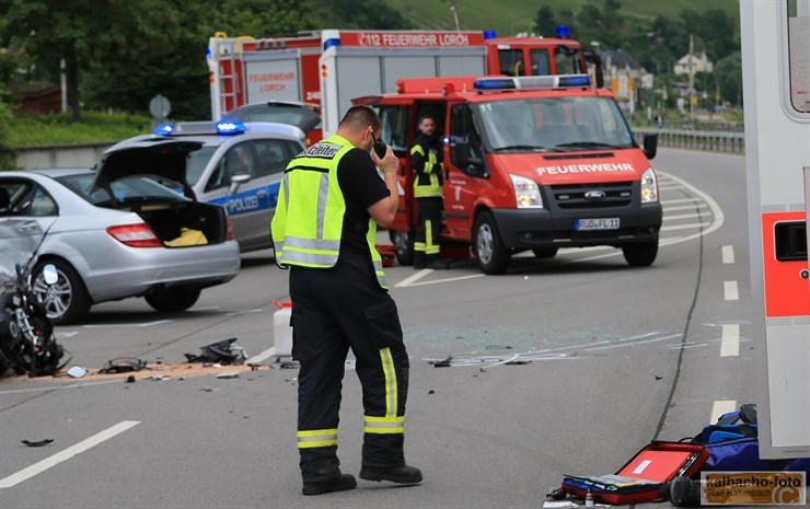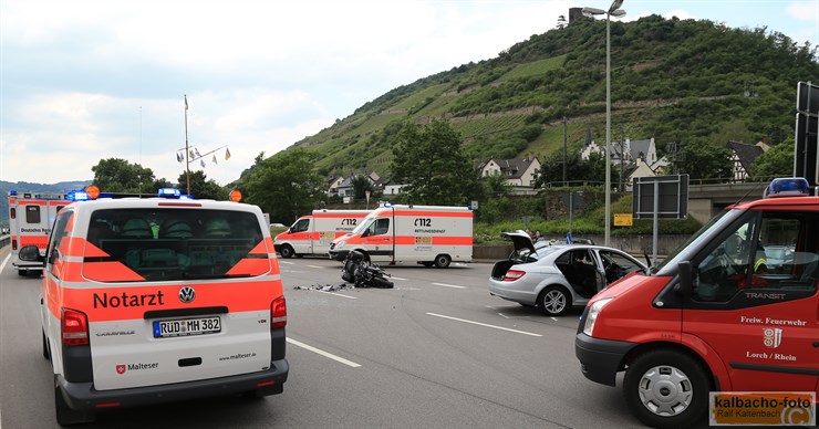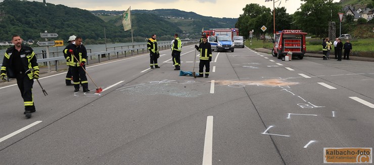 einem schweren Verkehrsunfall auf der B42 alarmiert. An der