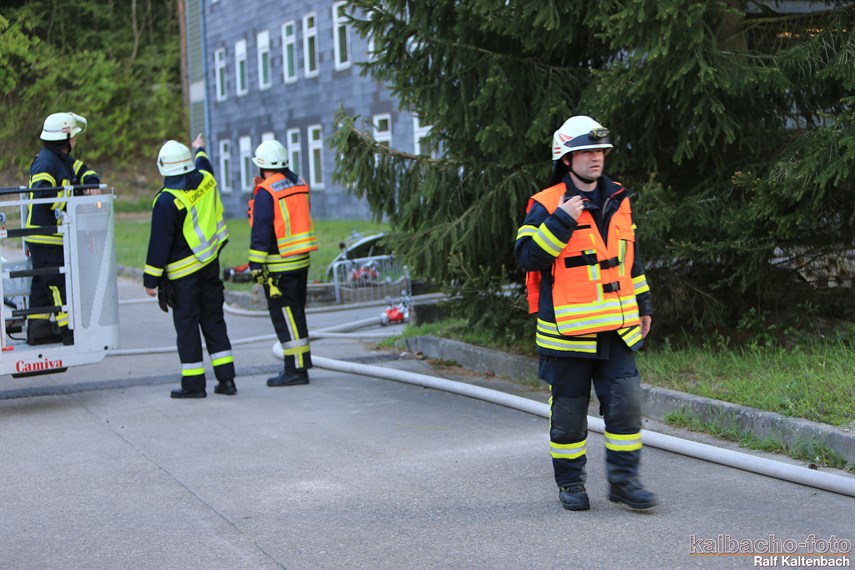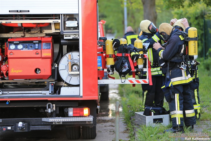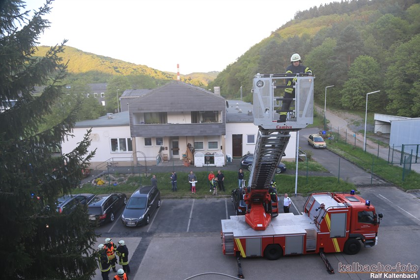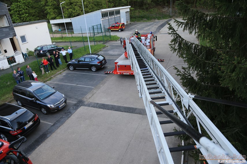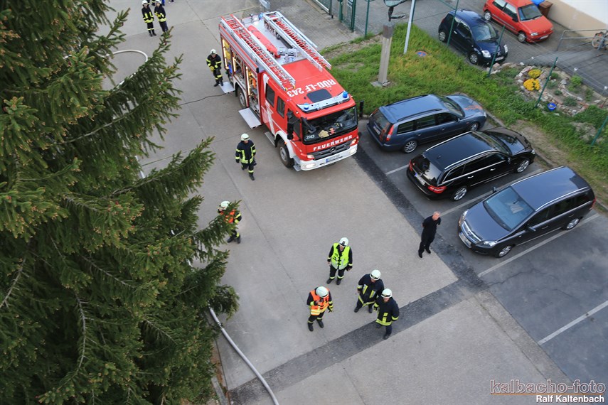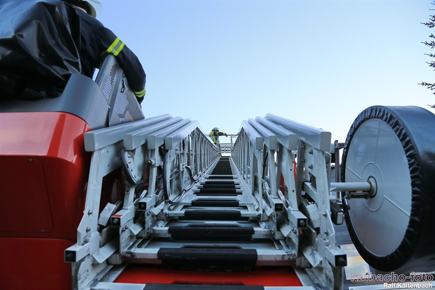 Drehleiter gerettet wurden. Außerdem wurde von drei Trupps unter