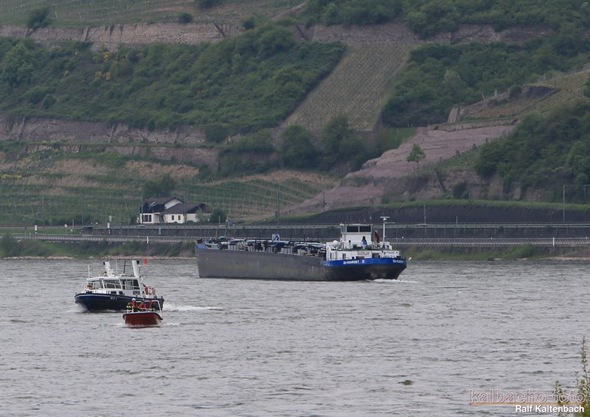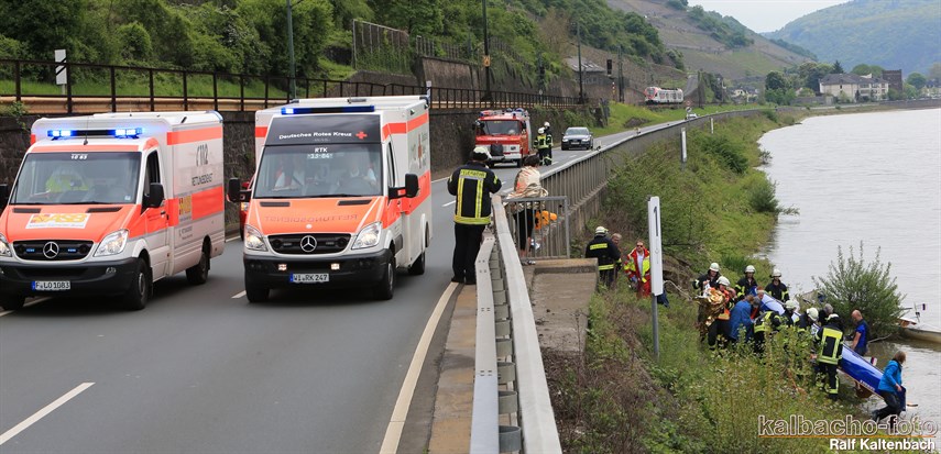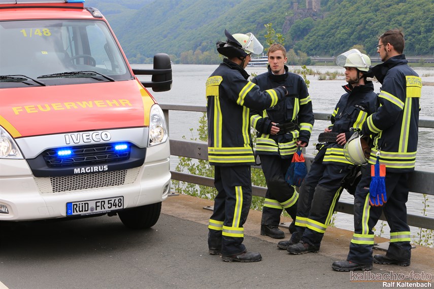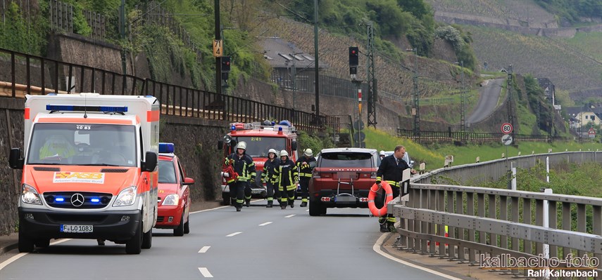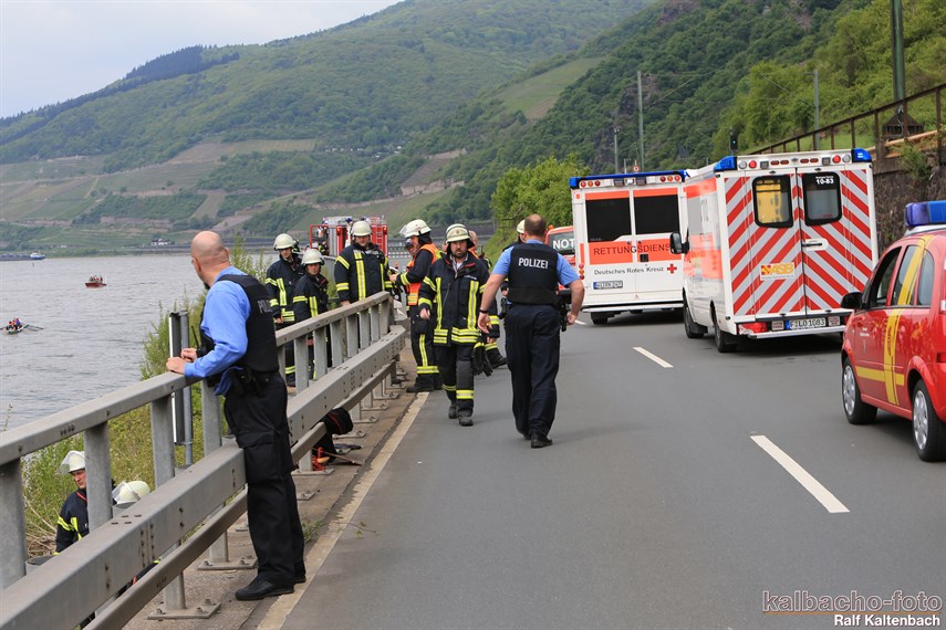 umgestürzten Ruderboot mit 5 Personen im Bereich Assmannshausen