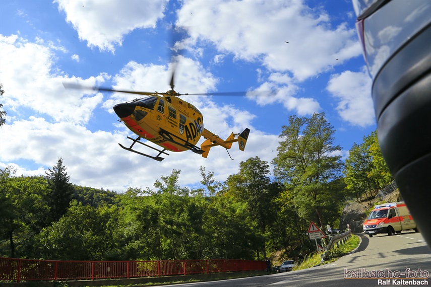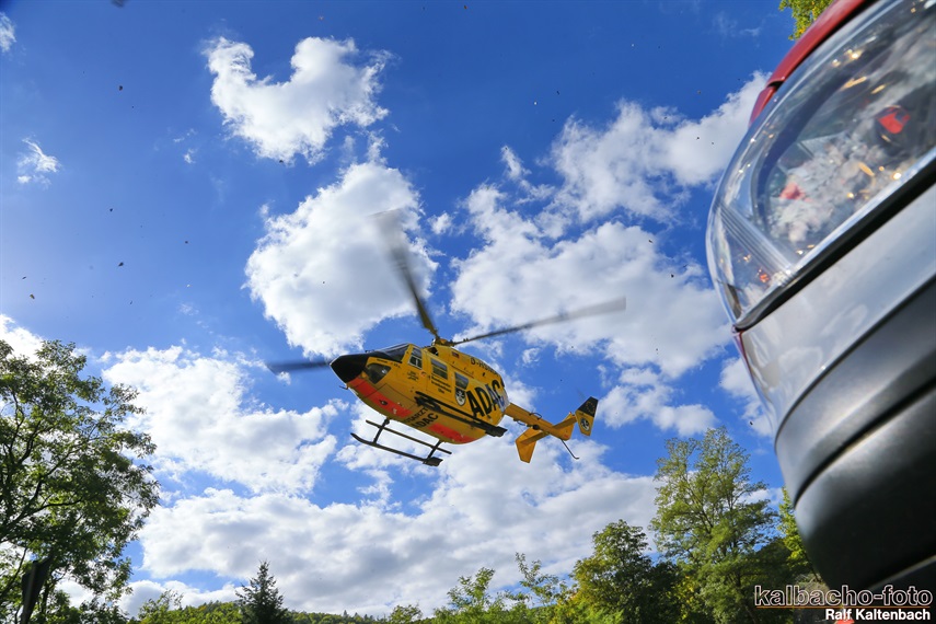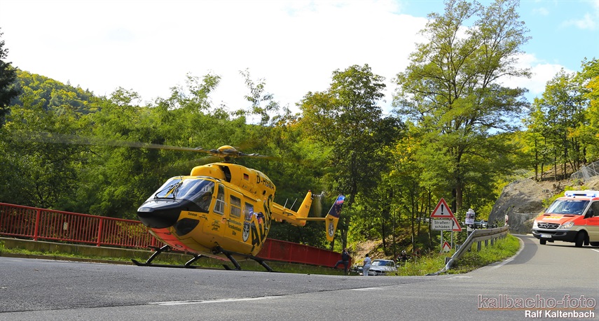 An der Einsatzstelle wurde der Hubschrauber welcher im Kurvenbereich