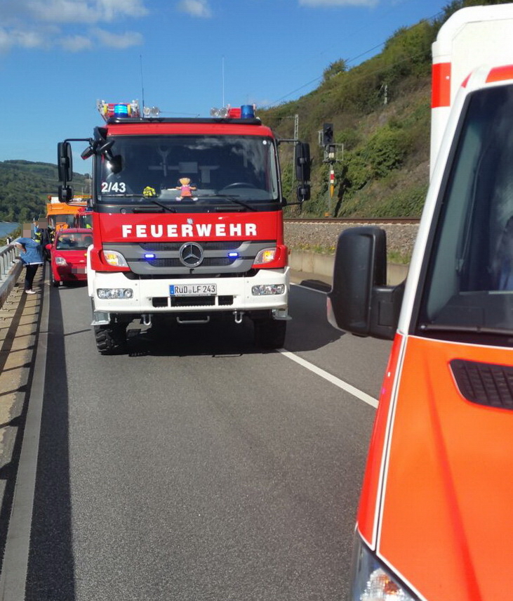 wurde die Feuerwehr Lorch zu einem Verkehrsunfall auf der B42