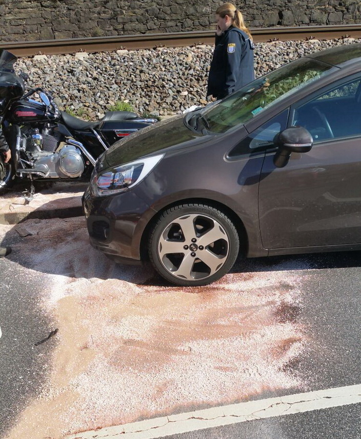 Feuerwehr musste auslaufende Betriebsstoffe abstreuen und die
