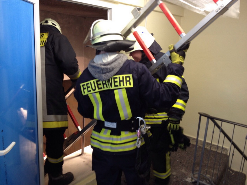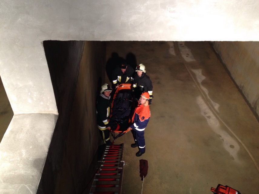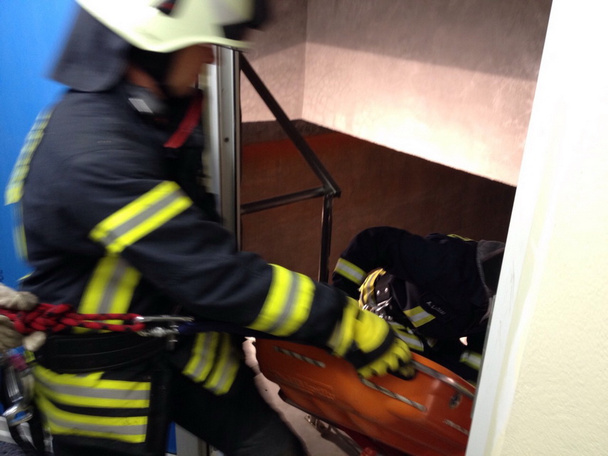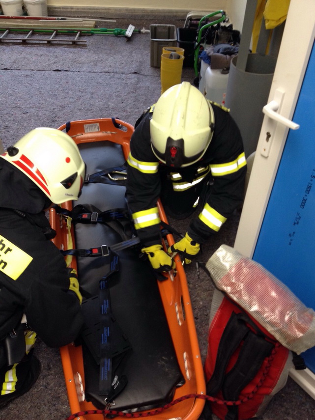Kammer. Die Person wurde mit Hilfe der Schleifkorbtrage über die