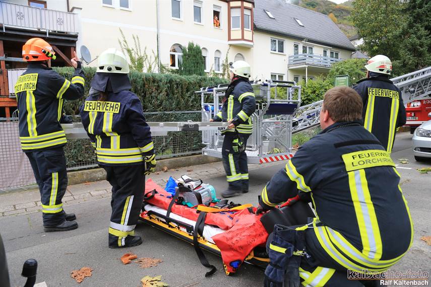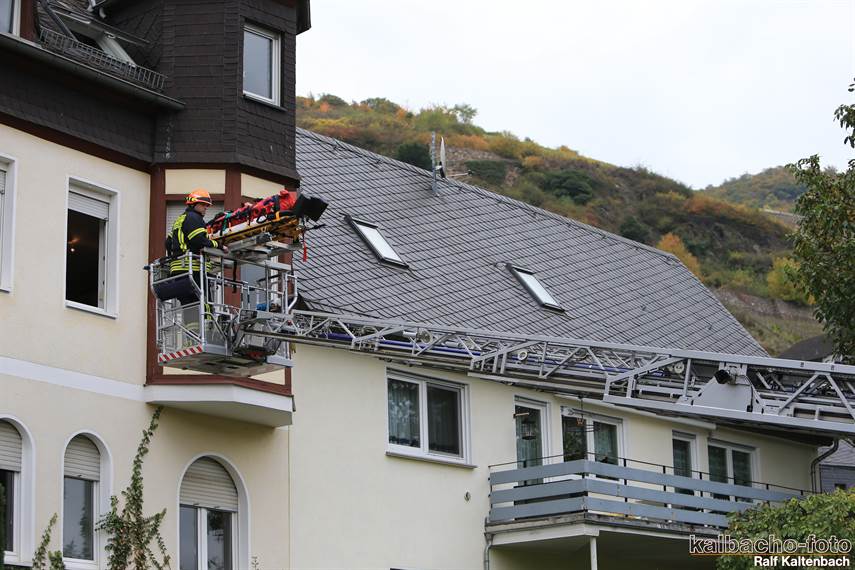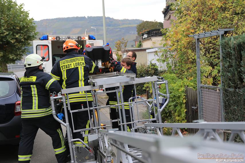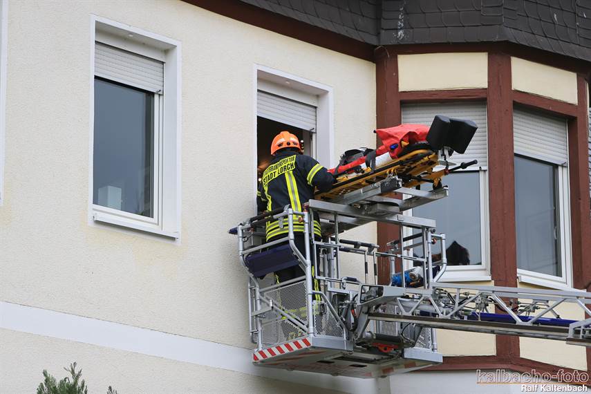die Drehleiter zu retten. Der Patient wurde anschließend an den