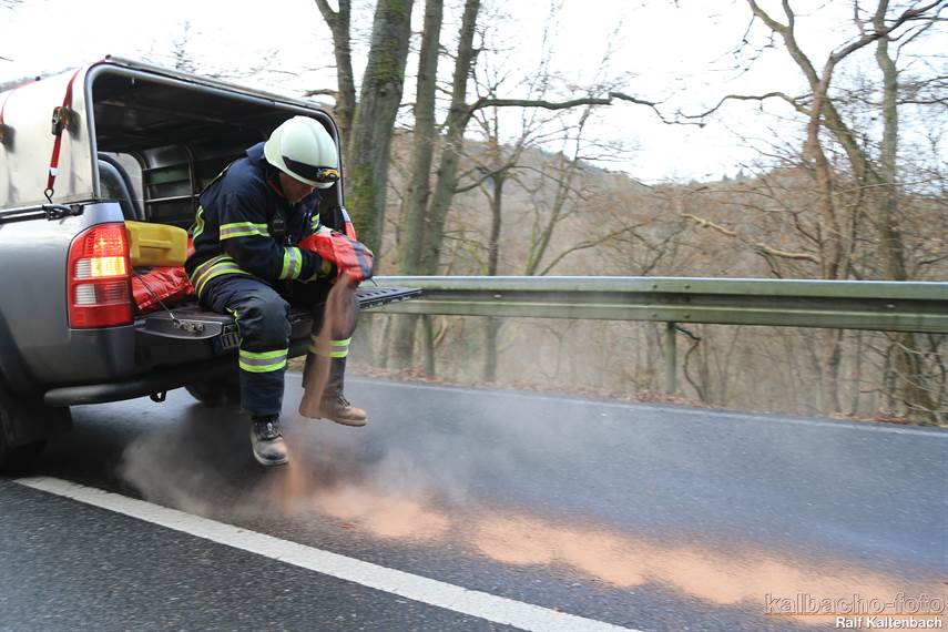 (HZ) Die Feuerwehren Lorch, Ransel und Wollmerschied wurden heute zu einer Ölspur auf der L3397 Lorch Richtung Ransel alarmiert. Eine ca. 2 Km lange Ölspur zog sich von der Abfahrt zur Panzerstraße bis hinter die Abfahrt nach Sauerthal. Diese wurde abgestreut und die Einsatzstelle anschließend der Straßenmeisterei übergeben.