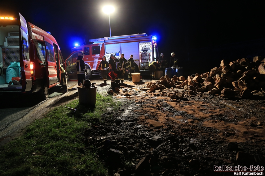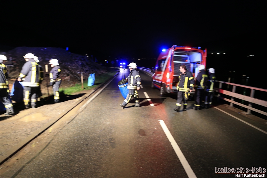 an der B42 alarmiert. Durch den Regen hatte sich eine große Pfütze