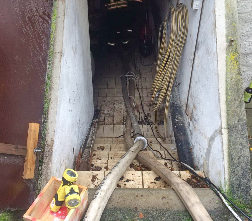 (TL) Feuerwehr Lorch unterstützt Einsatzkräfte aus Wollmerschied und Ransel bei einem vollgelaufenen Keller.