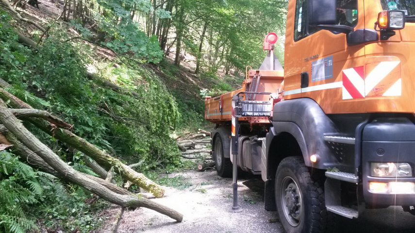 (TL) Auf der Landstraße L 3397 waren oberhalb der Abfahrt Sauerthal mehrere Bäume umgestürzt.