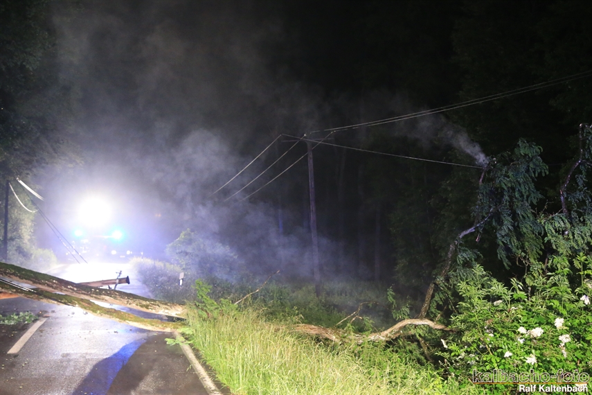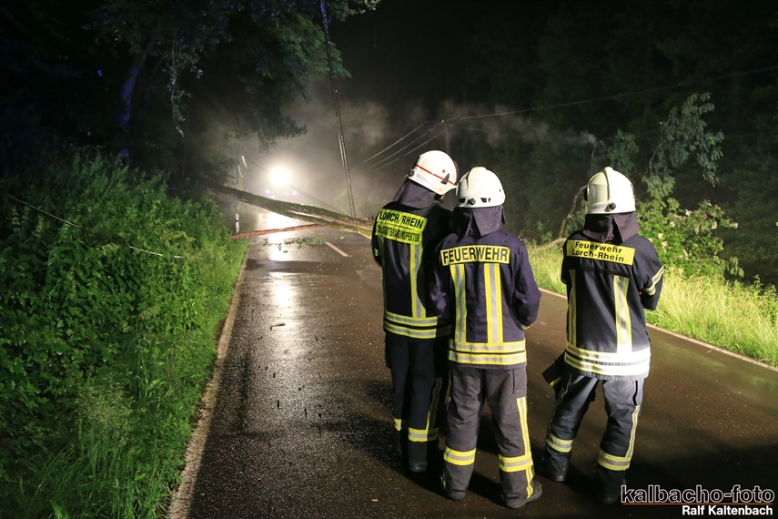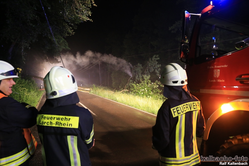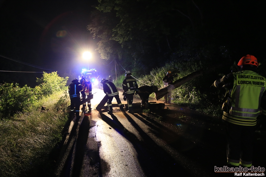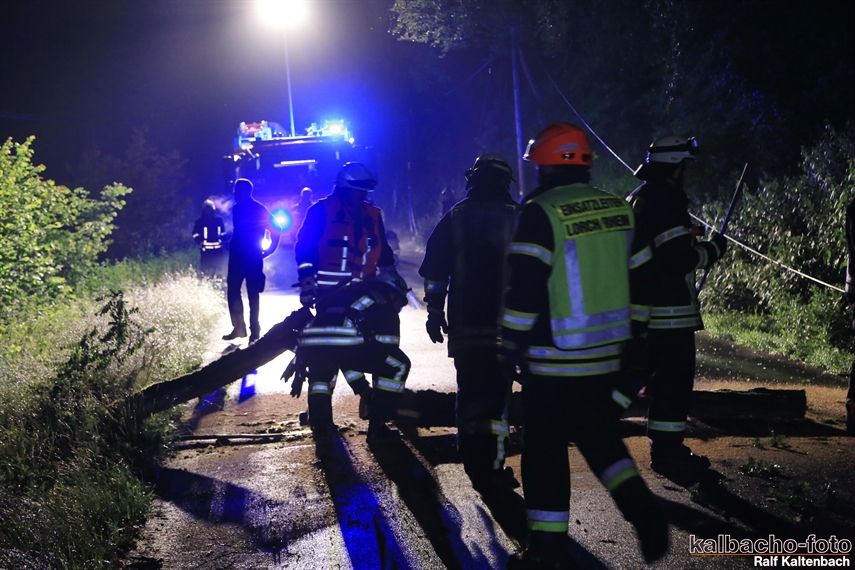 (HZ) Die Feuerwehr Lorch wurde zu einem umgestürzten Baum auf der Wisperstraße alarmiert. Ein größerer Baum lag über der Fahrbahn, der Telefonleitung und mit der Krone in der 20KV Freileitung. Zur Absicherung der E- Stelle von der Gegenrichtung wurde die Feuerwehr Espenschied nachalarmiert. Ebenso wurde der Energieversorger über die Leitstelle alarmiert. Der Baum wurde nach der Abschaltung der Freileitung beseitigt.