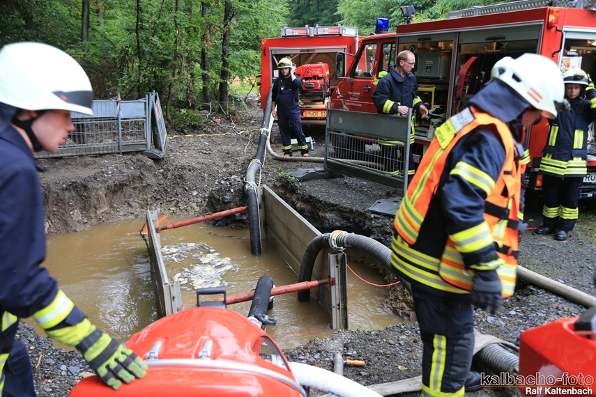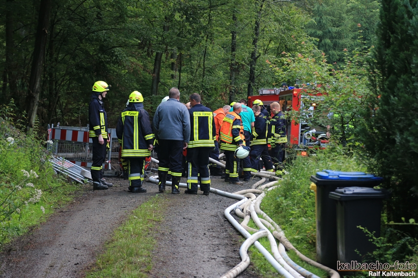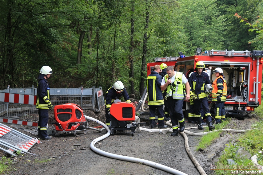 (TL) Erneut wurden die Feuerwehren der Stadt Lorch durch den Wassermeister zur Grube Kreutzberg angefordert. Genau wie beim letzten mal war bedingt durch die heftigen Niederschläge von teils 60 Liter pro Tag die Trinkwasser Gewinnung gefährdet.