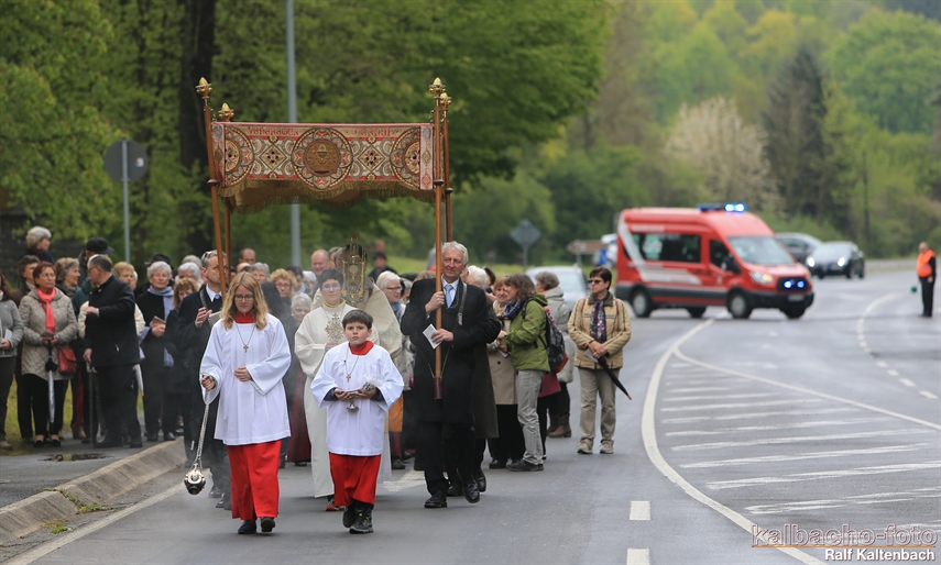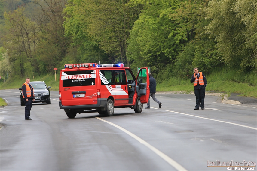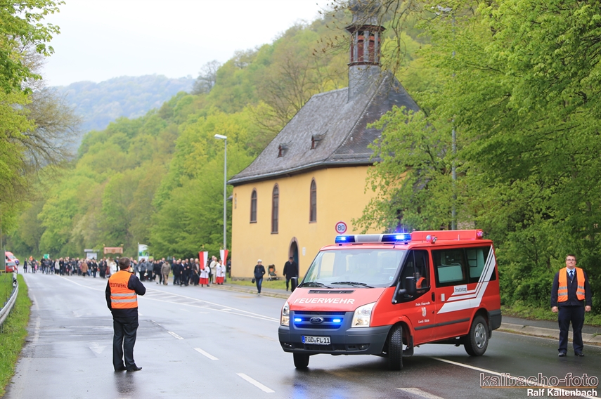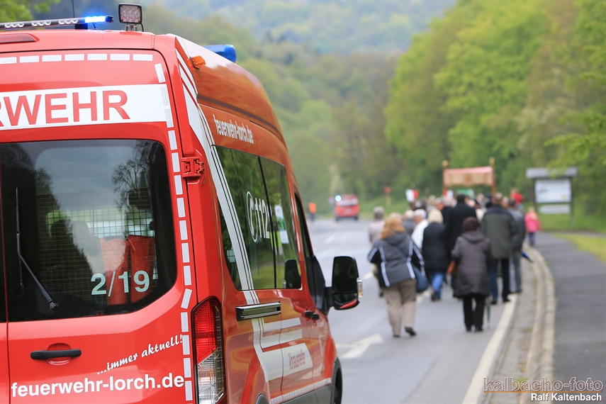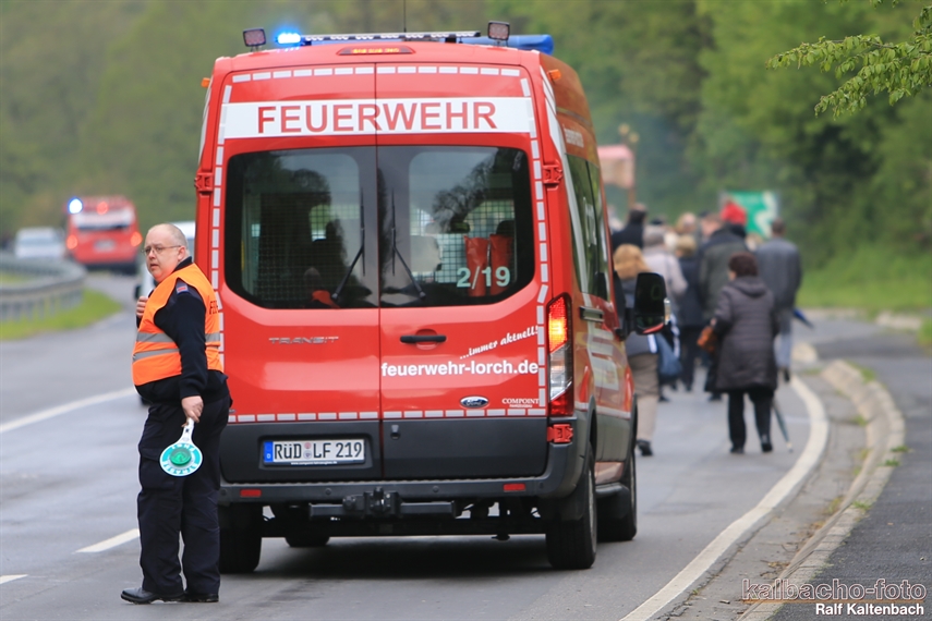 (HZ) Heute sicherte die Feuerwehr Lorch die Prozession zur Kreuzkapelle ab. Die Prozession ging von der Kirche über die Hauptstraße zu Kapelle am Ortseingang im Wispertal und nach der dortigen Messe wieder zurück.