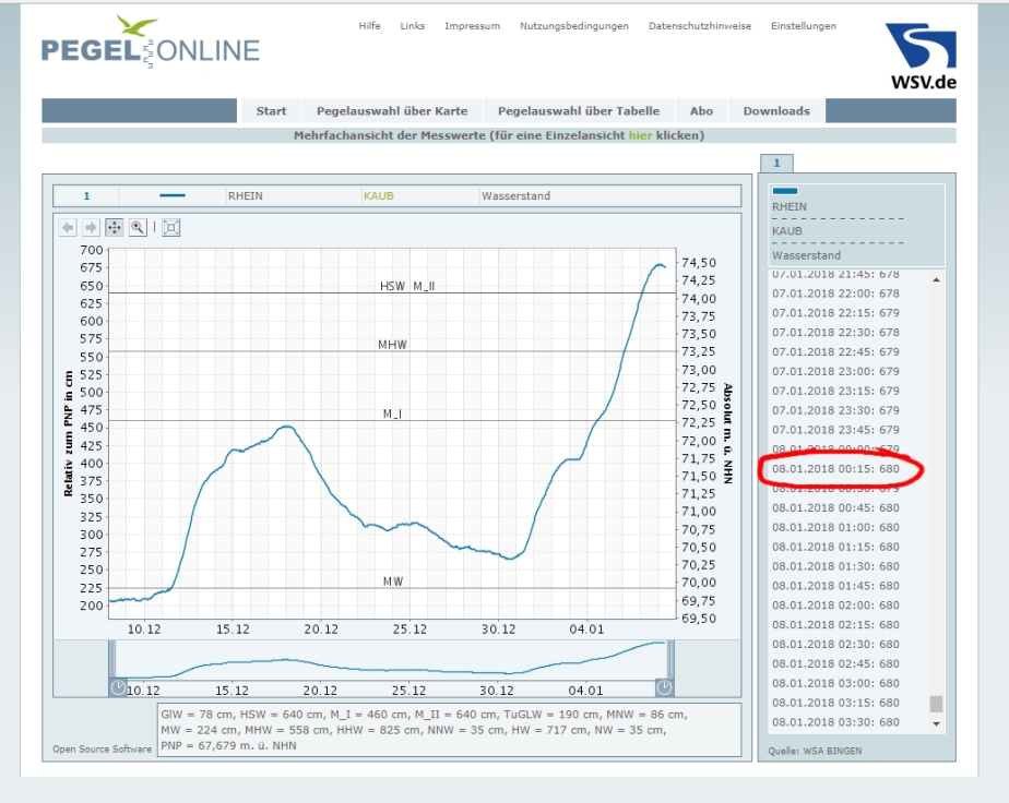 Höchststand war am 08.01.2018 um 0.15 Uhr