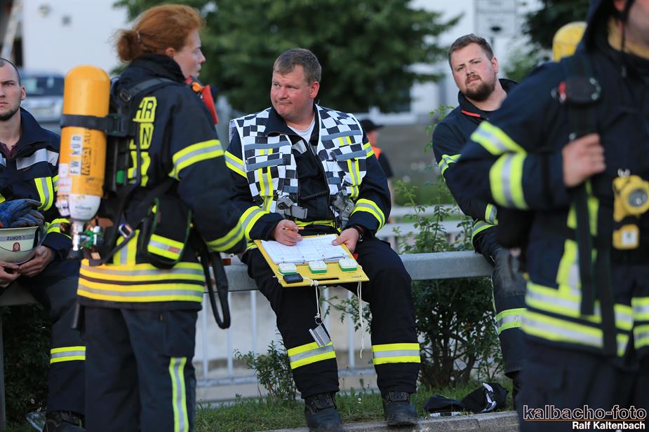 unterstütze den Löschangriff. Das Feuer war