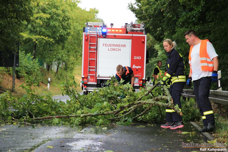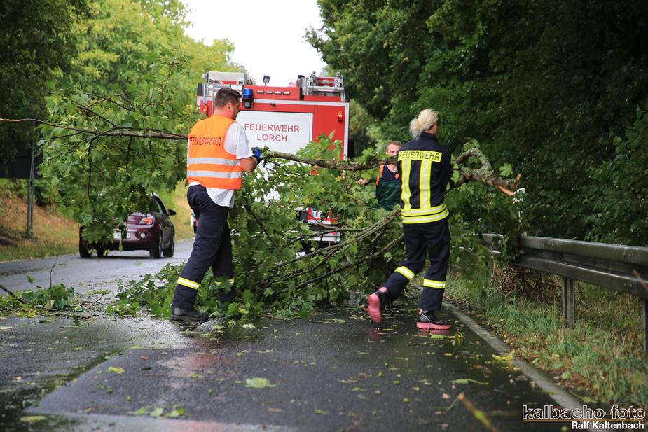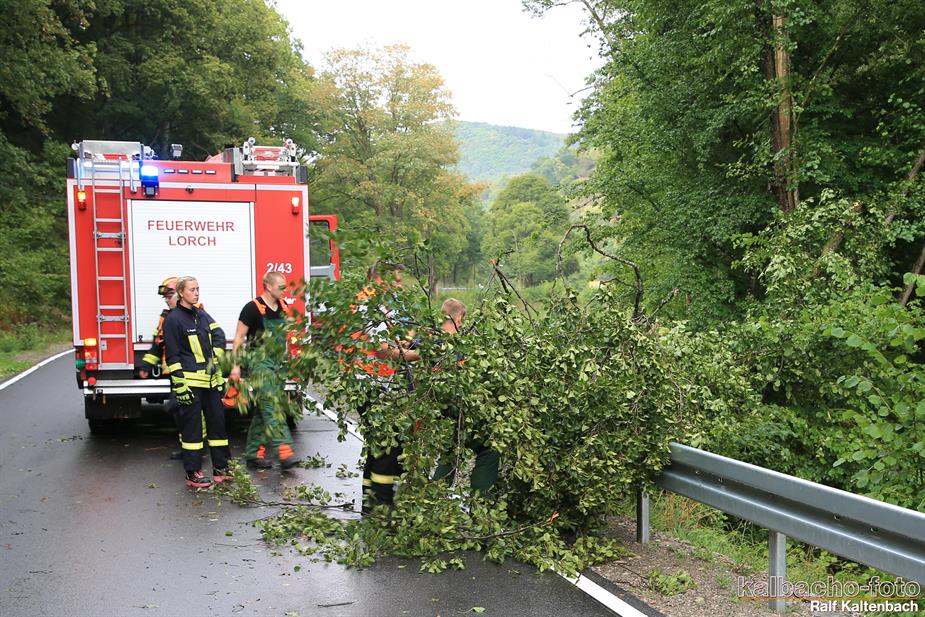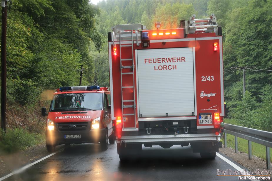 (TL) Die Feuerwehr Lorch wurde zu mehreren Unwetterschäden auf die Straße Richtung Ransel sowie in das Wispertal alarmiert.
