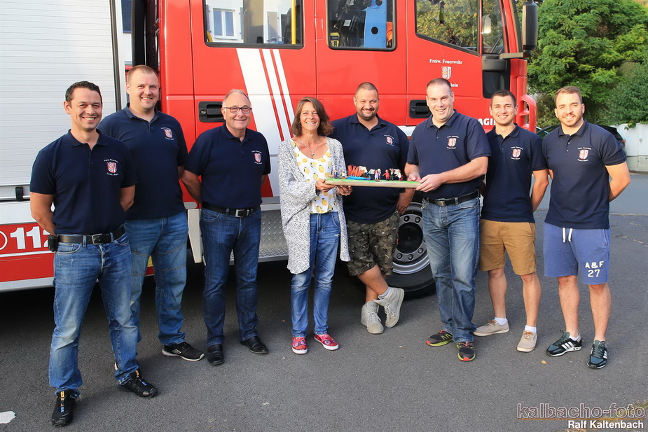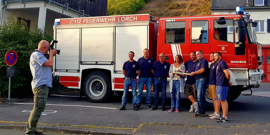 Am 10.09.2018 fand die Spendenübergabe an die Freiwillige Feuerwehr Lorch statt. Esther Pscheidt, die Künstlerin, die aus Treibholz und anderen Fundstücken, Kunst und Dekorationen herstellt, hatte im Rahmen der Müllsammelaktion eines ihrer Dekorationen versteigert. Herr Helbing bekam den Zuschlag bei 50 Euro. Andere Lorcher die mit Müll gesammelt haben, waren ebenso spendabel. Frau Pscheidt rundete auf und so kamen 100 Euro zusammen, die sie nun übergeben konnte. Einfach mal Danke sagen, so ihre Aussage, für die unermüdliche Arbeit der Männer und Frauen der Freiwilligen Feuerwehr