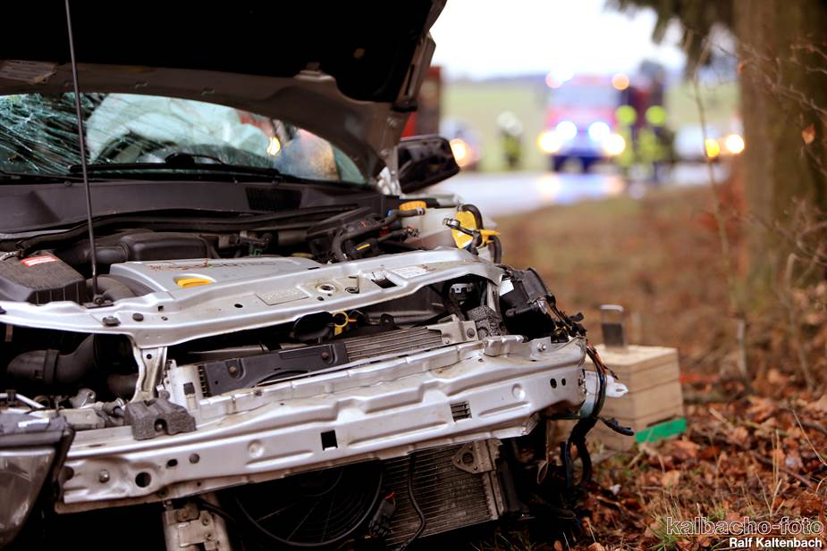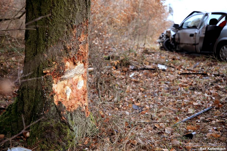 gerader Strecke von der Fahrbahn ab und prallte gegen einen Baum. Der