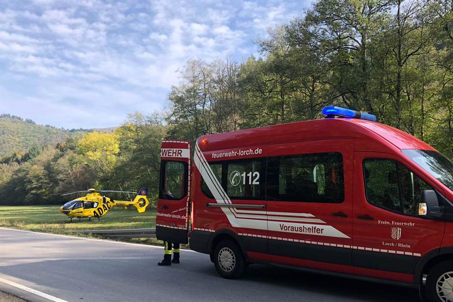 (TL) Die Voraushelfer der Feuerwehr Lorch wurden zu einem Verkehrsunfall ins Wispertal alarmiert.