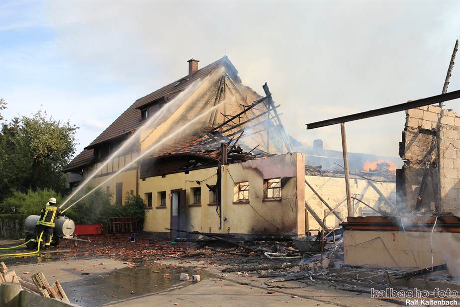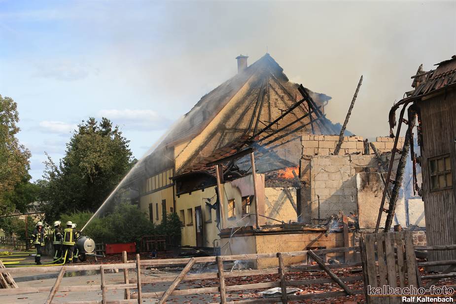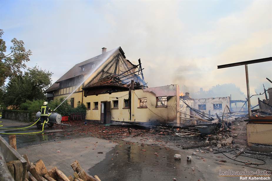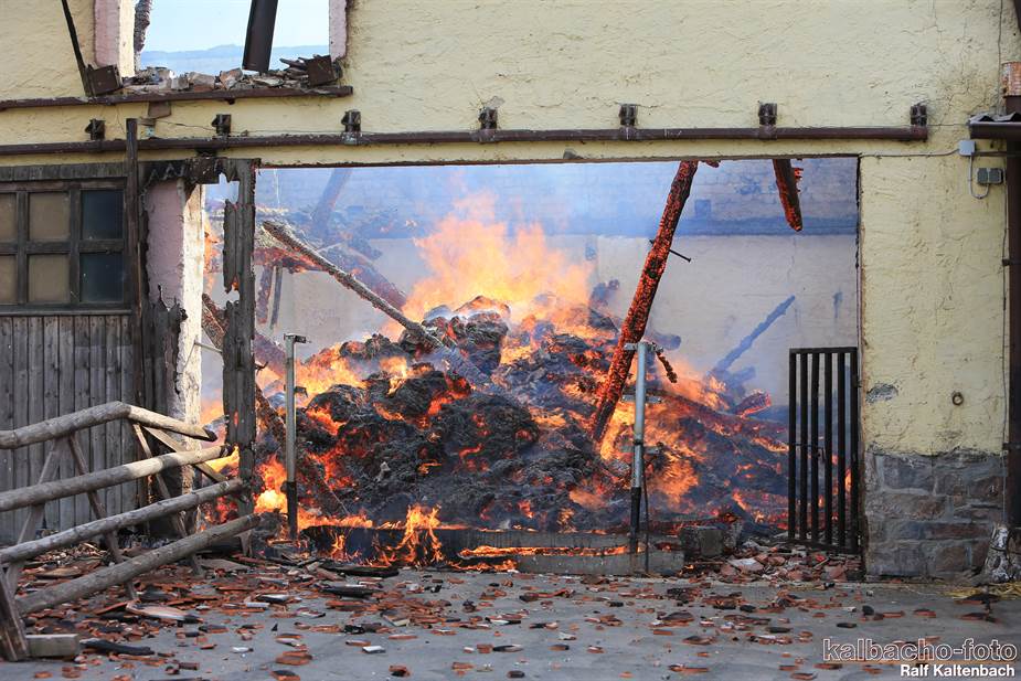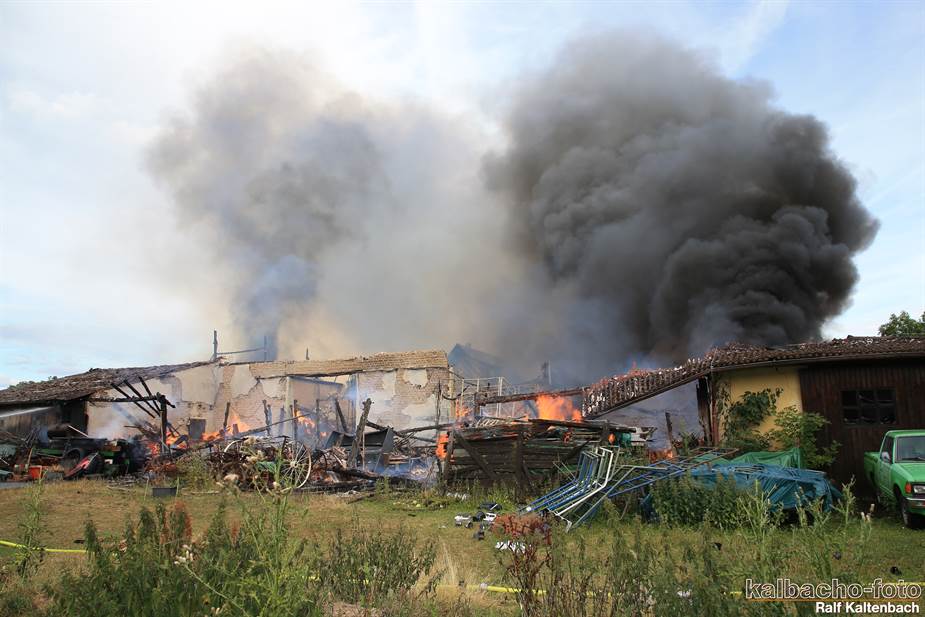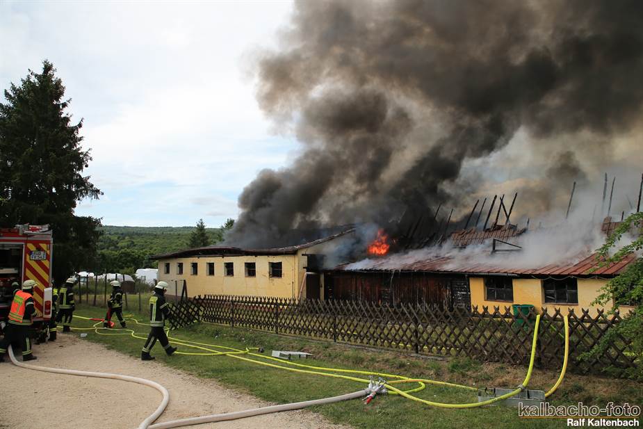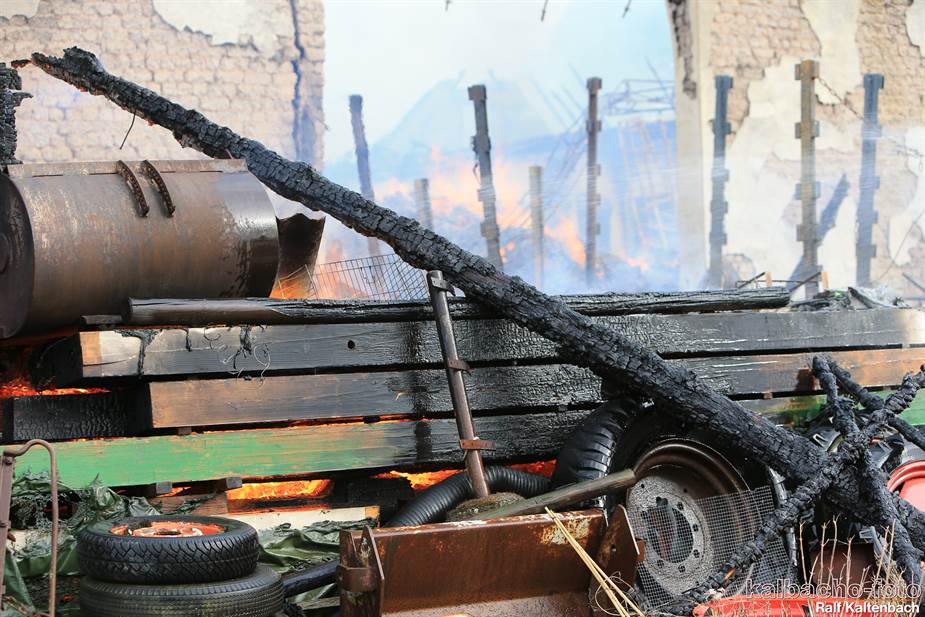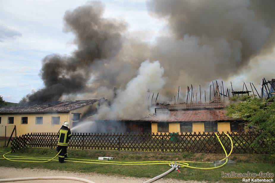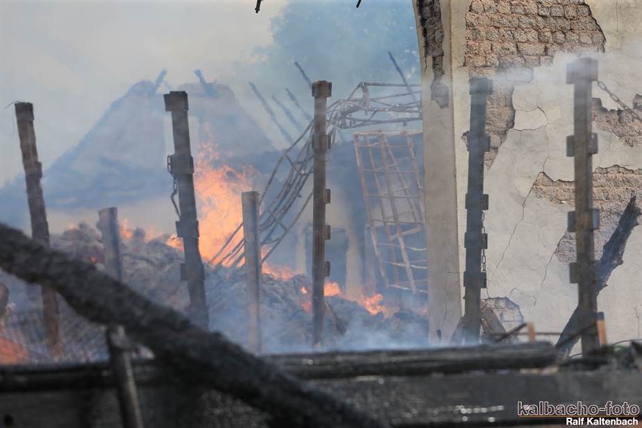 Sonntagabend ein Feuer ausgebrochen. Sowohl die Stallungen als auch