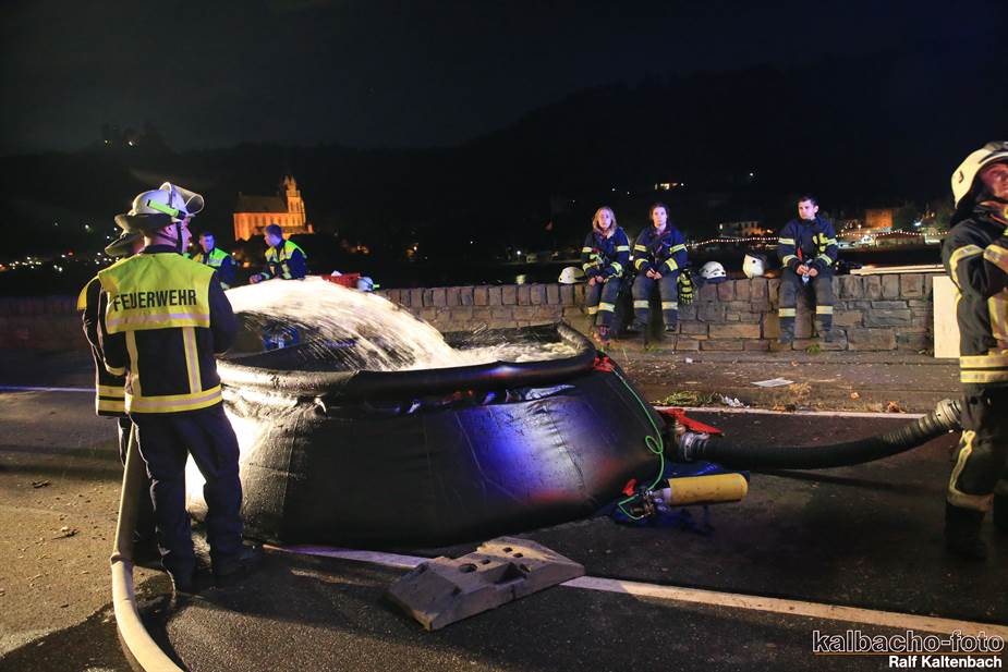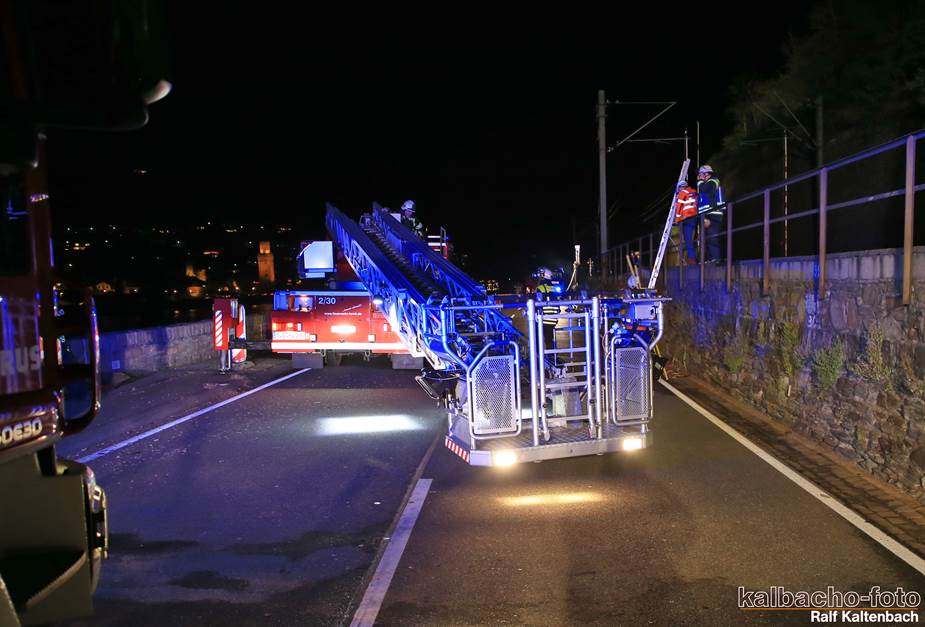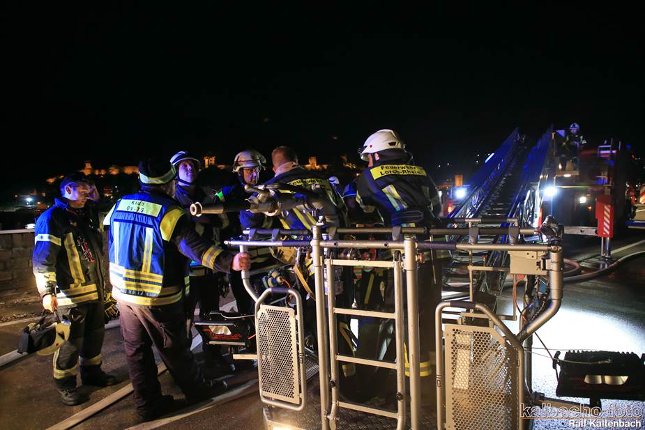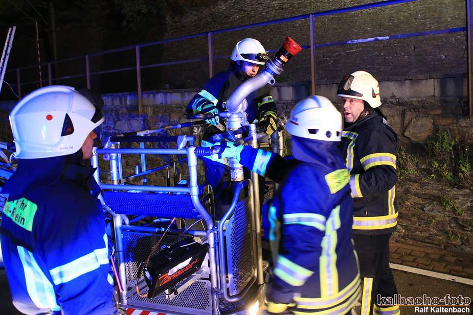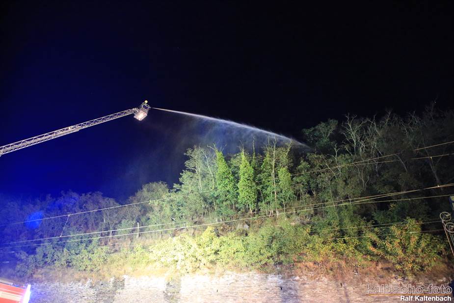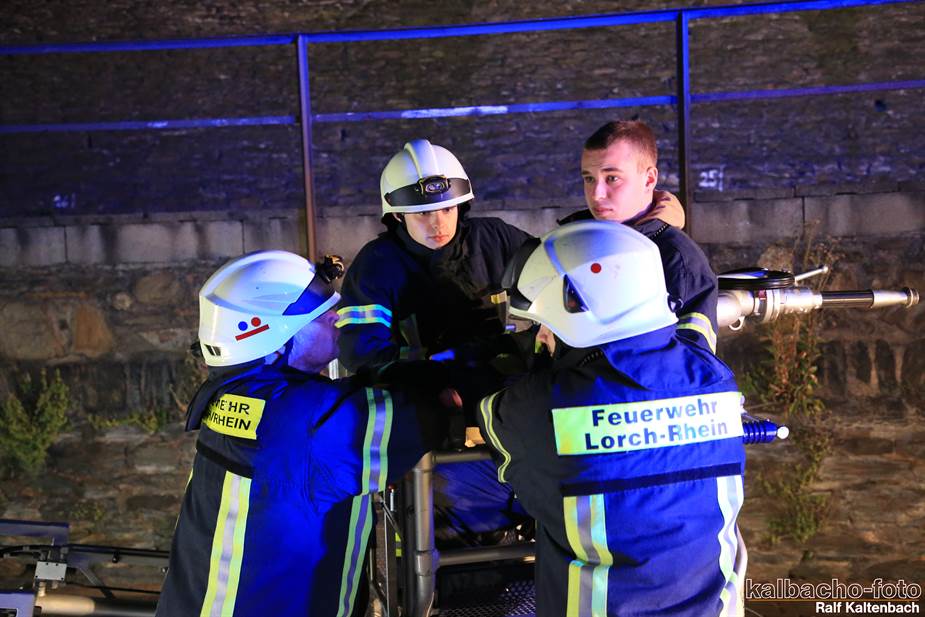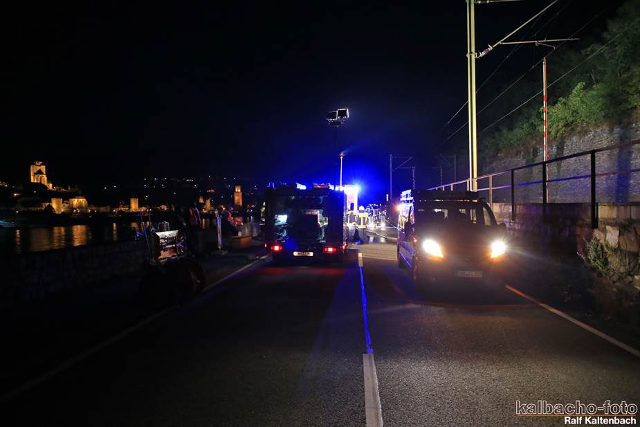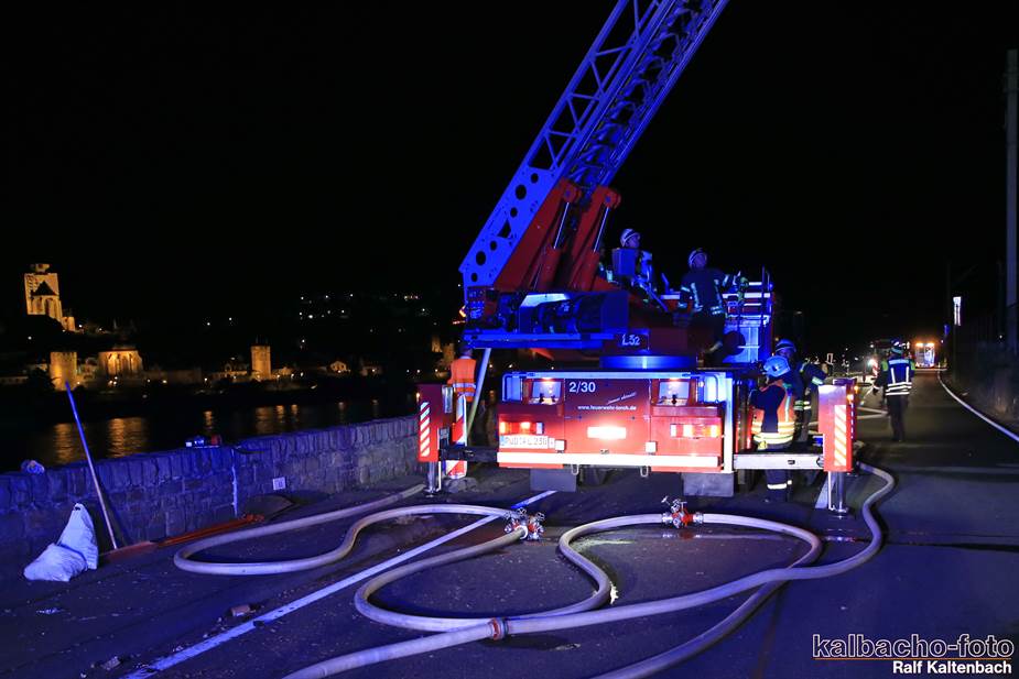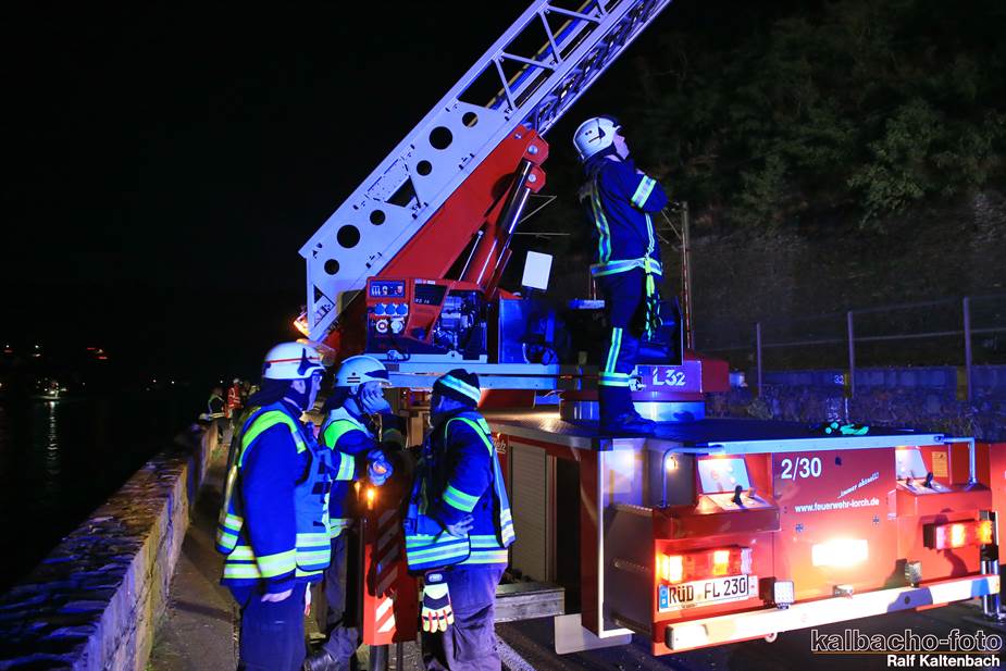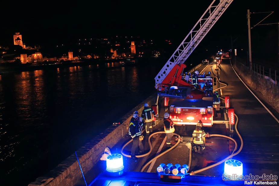 Fw Kaub gerufen. Nach dem Feuerwerk brannte es