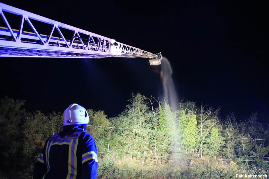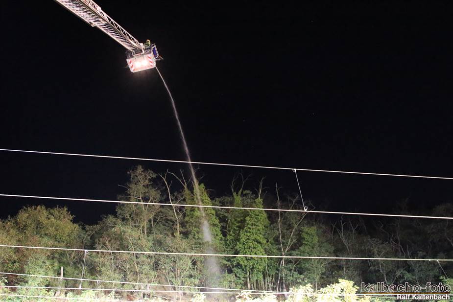 oberhalb der Bahn im Waldbereich. Die Drehleiter