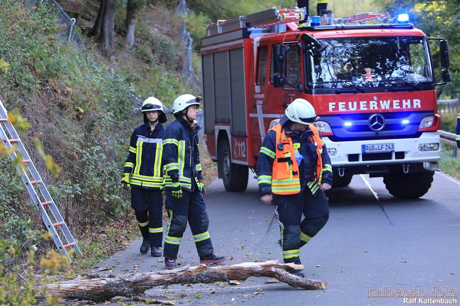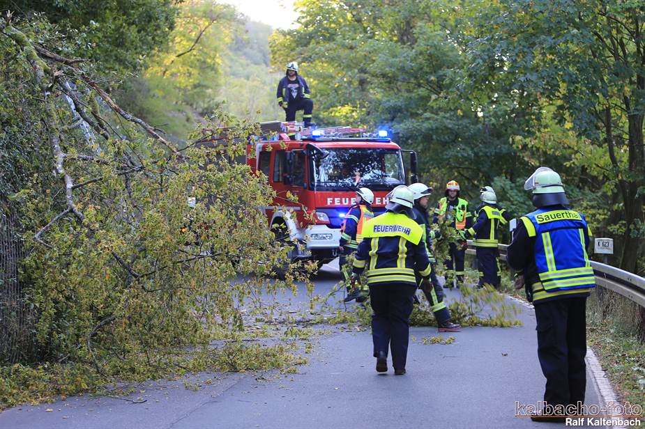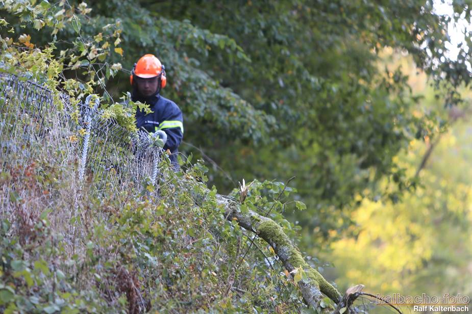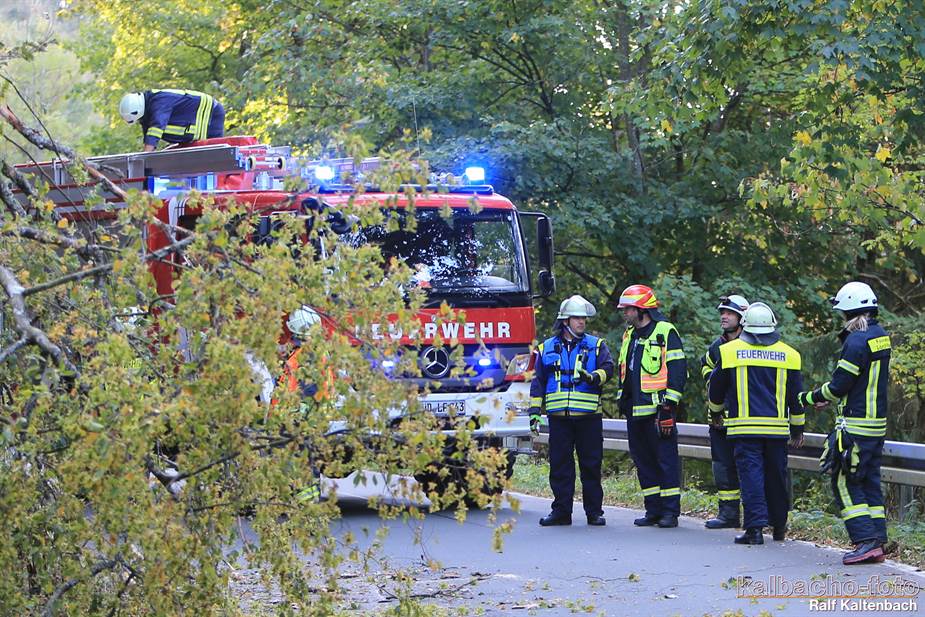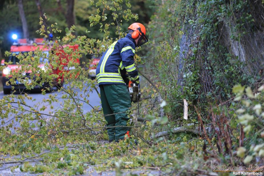 (TL) Die Feuerwehr Lorch wurde zu einem umgestürzten Baum im Kurvenbereich Richtung Sauerthal alarmiert. Mit der Motorsäge wurde der Baum zerkleinert.