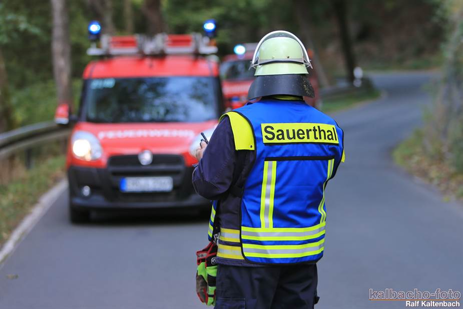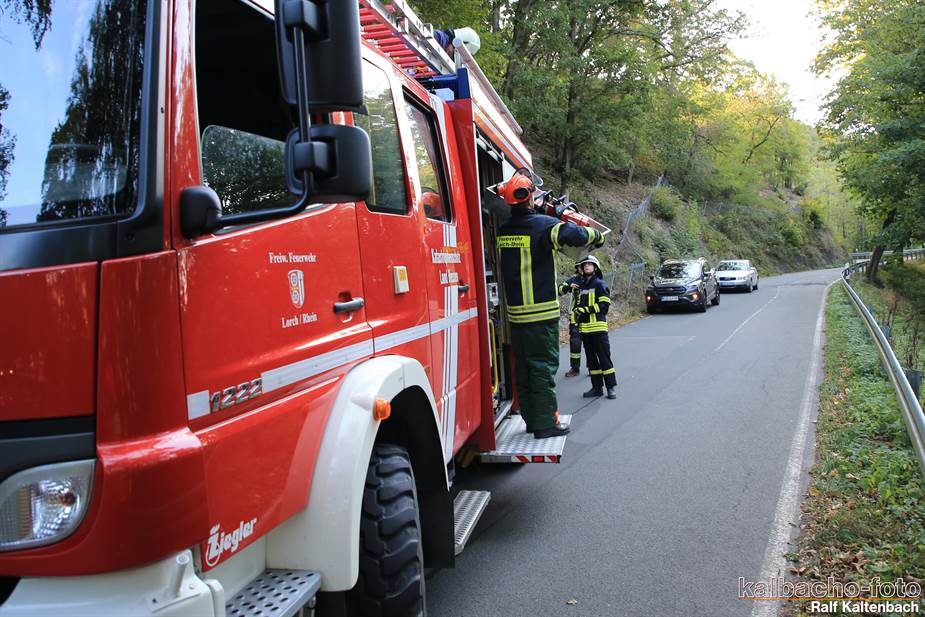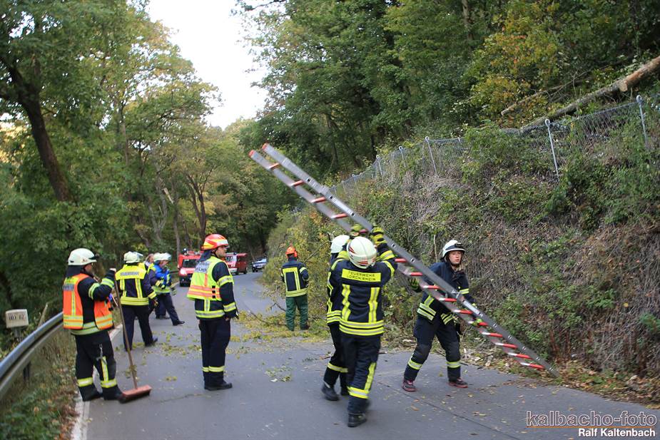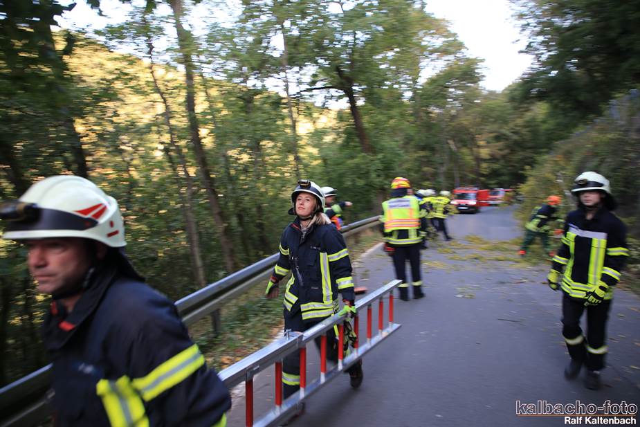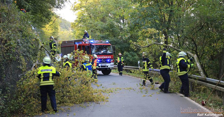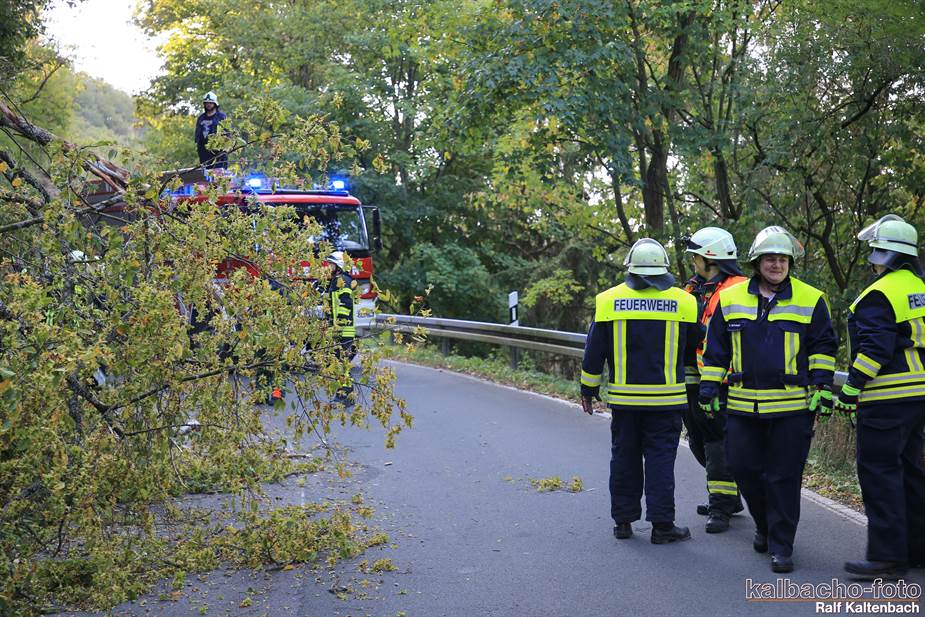(TL) Die Feuerwehr Lorch wurde zu einem umgestürzten Baum im Kurvenbereich Richtung Sauerthal alarmiert. Mit der Motorsäge wurde der Baum zerkleinert.
