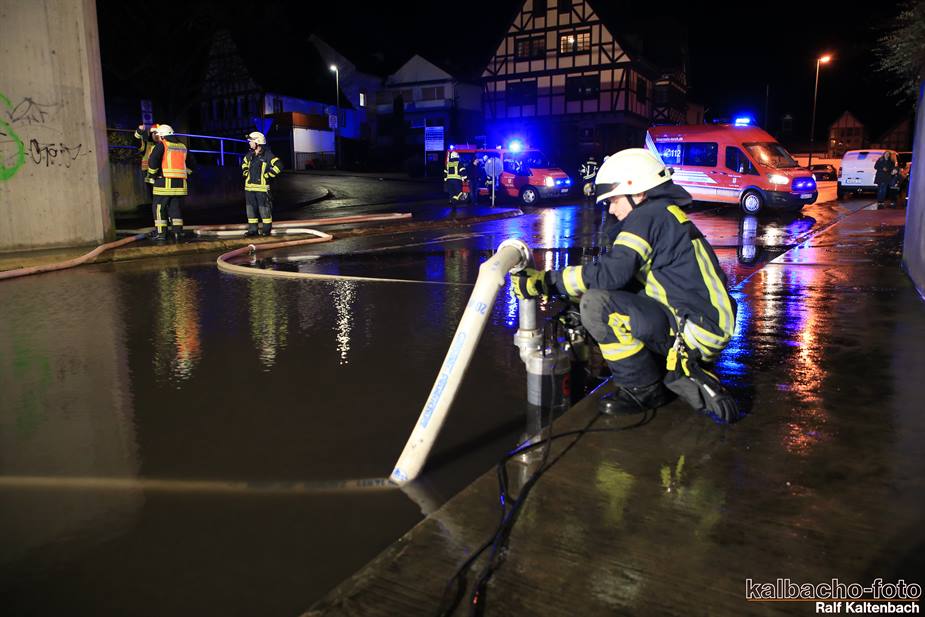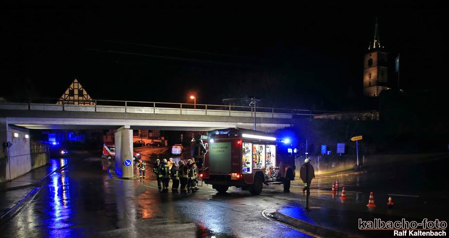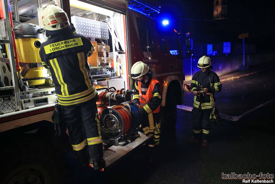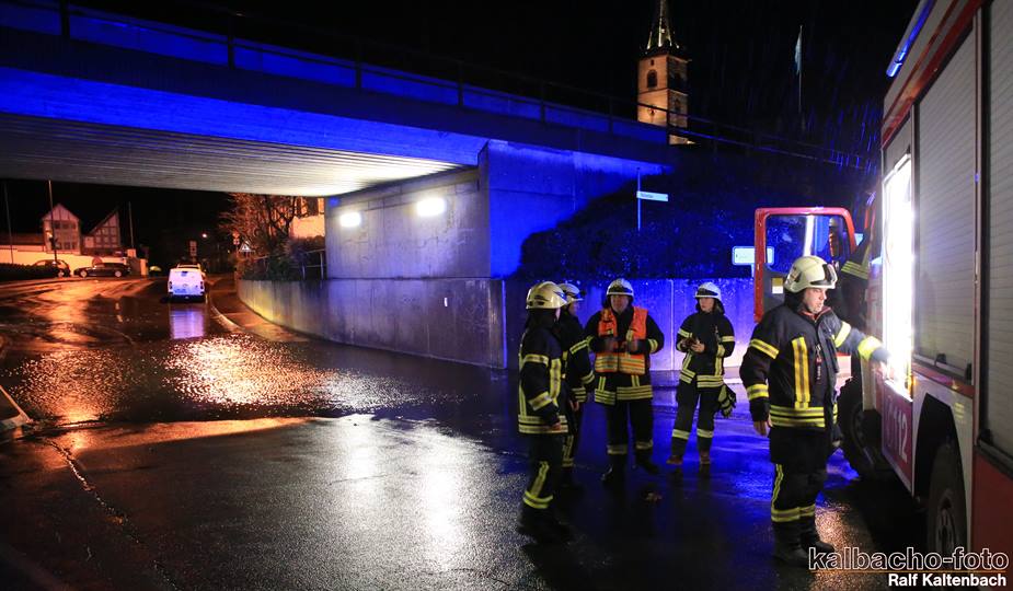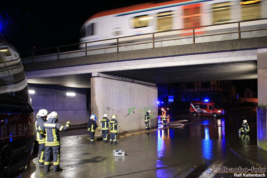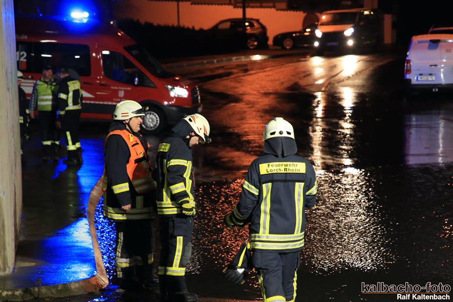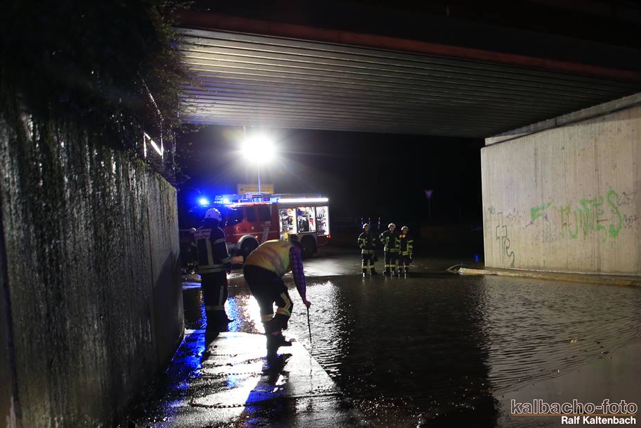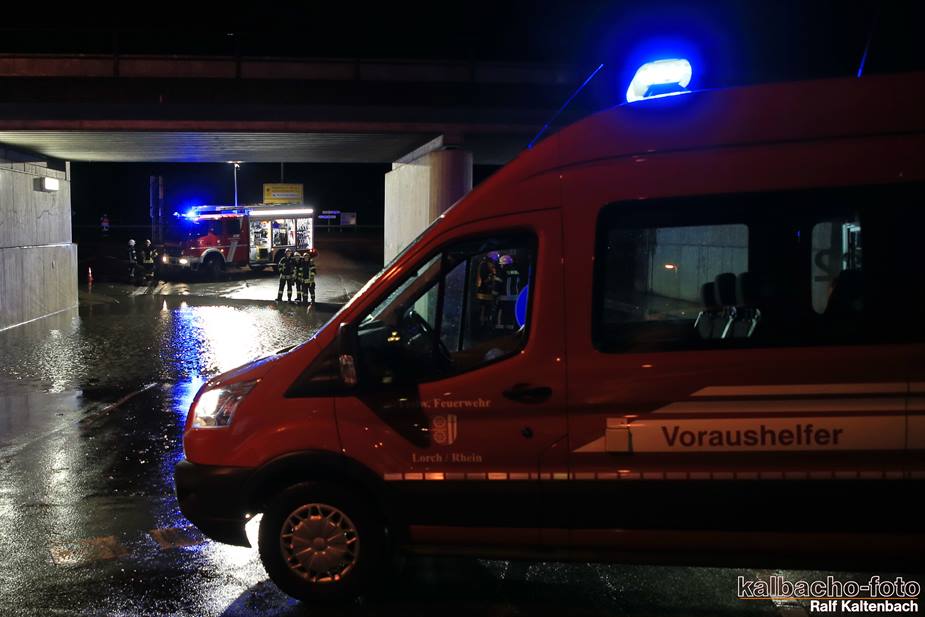 (TL) Die Feuerwehr Lorch wurde zu einen Unwetterschaden alarmiert. Die Unterführung war wegen des kurzen aber heftigen Gewitter zugelaufen und musste ausgepumpt werden.