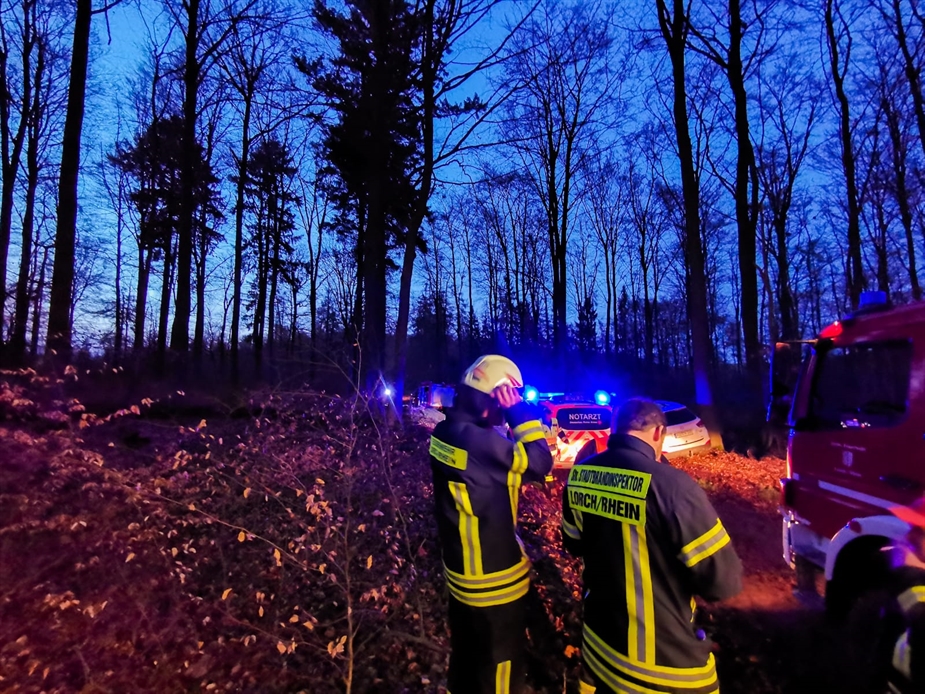 (TL) Die Feuerwehr Lorch wurde in den Wald bei Wollmerschied gerufen. Dort hatte sich ein Forstunfall ereignet bei dem der Rettungsdienst unterstützt wurde.