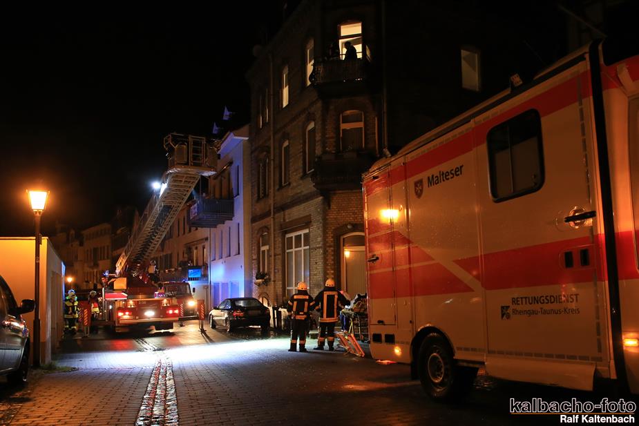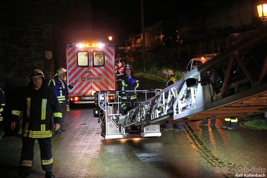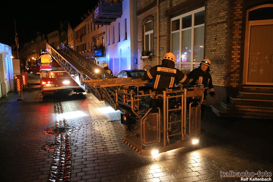 (TL) Die Feuerwehr Lorch wurde mit der Drehleiter überörtlich nach Kaub angefordert.