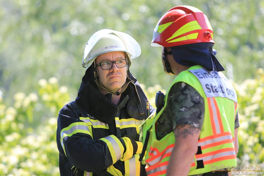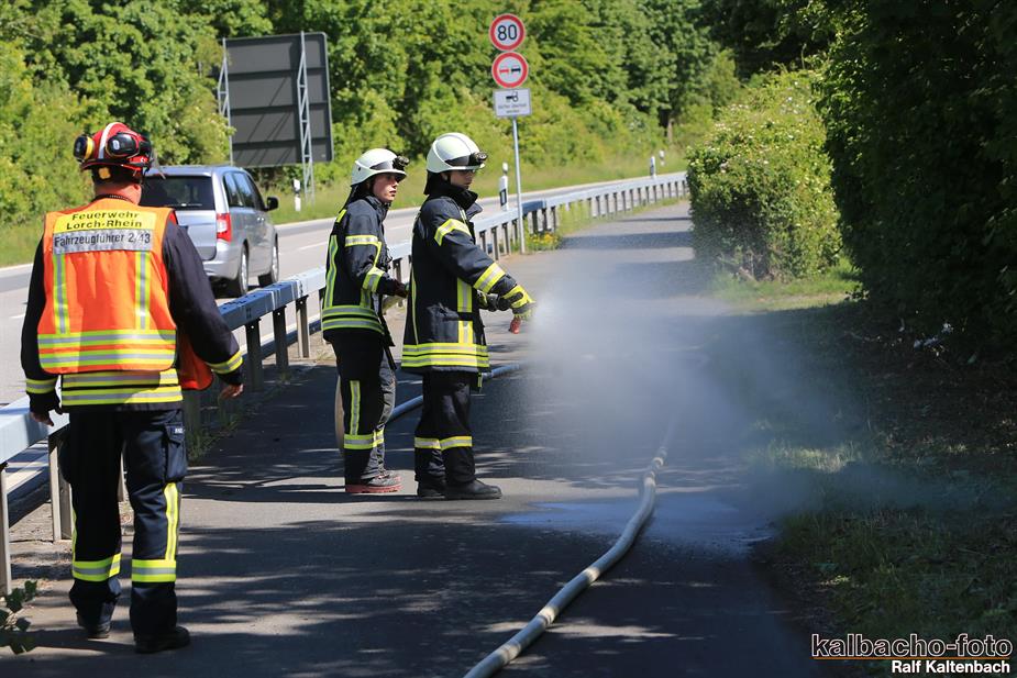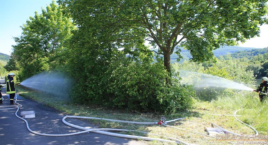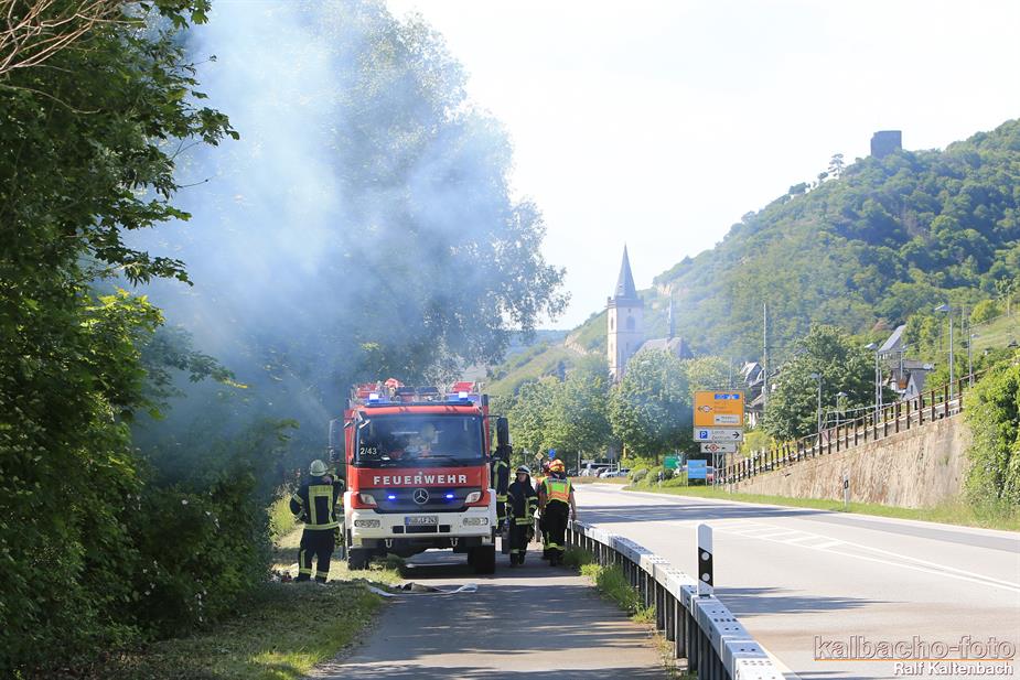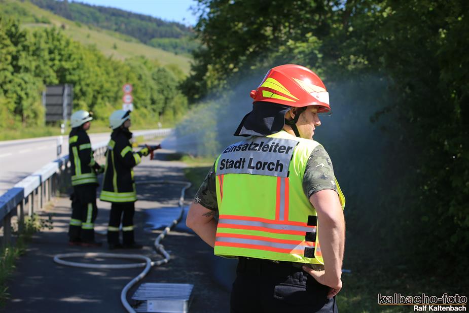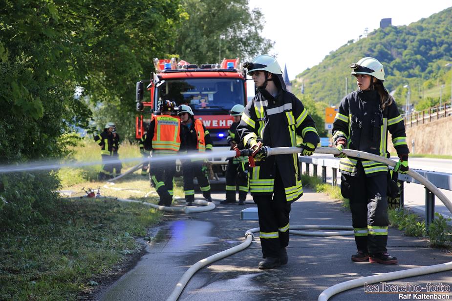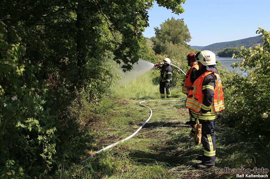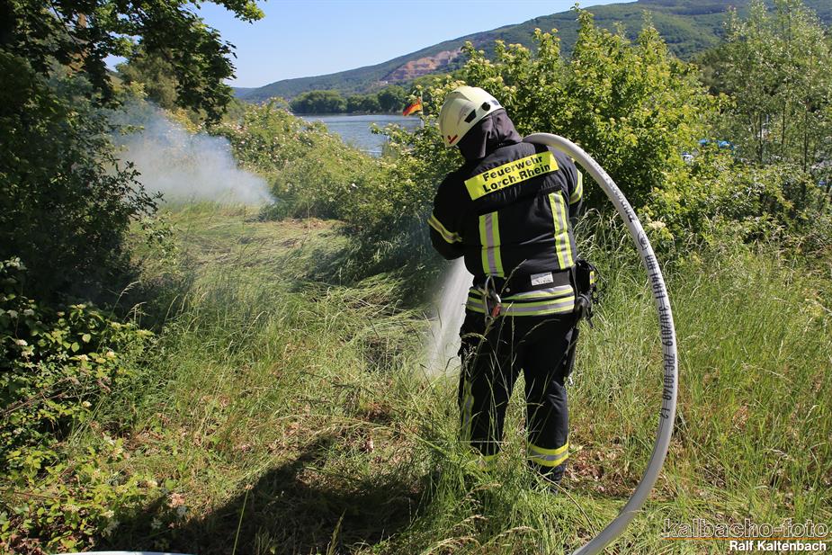 (TL) Die Einsatzkräfte waren noch im Gerätehaus als bereits der nächste Alarm einging. Die Wehr Lorch wurde zu einem Flächenbrand Höhe Autofähre an der B42 gerufen. Mit 2 C Rohren wurde das Feuer gelöscht