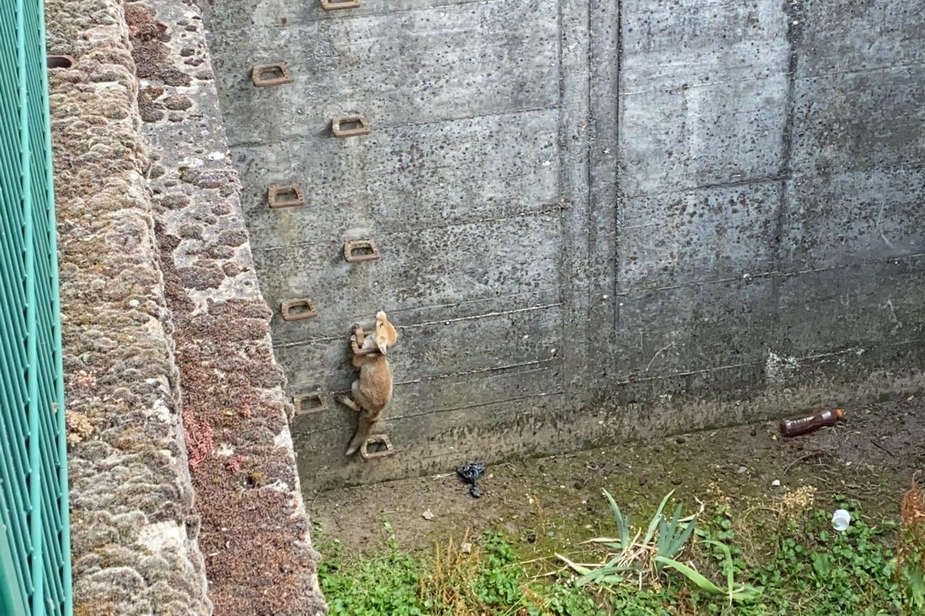 Fuchs hatte sich im Regenrückhaltebecken verfangen