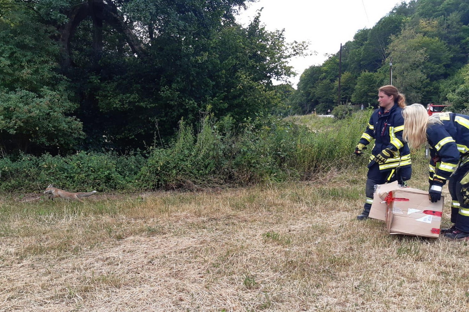 Nachdem der Fuchs eingefangen war, wurde er im Wald