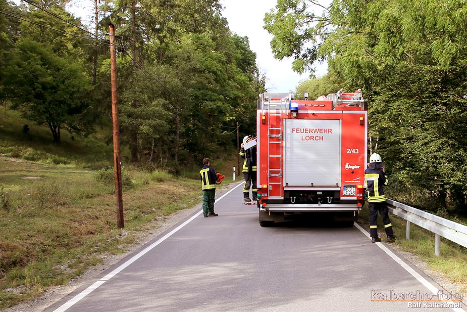 (TL) Die Feuerwehr Lorch wurde zu einem umgestürzten Baum auf die Wisperstraße gerufen. Mit einer Motorsäge wurde der Baum zerkleinert und beiseite geräumt.