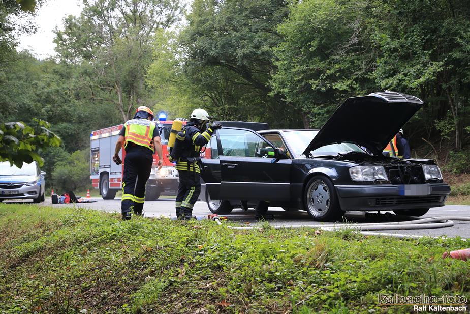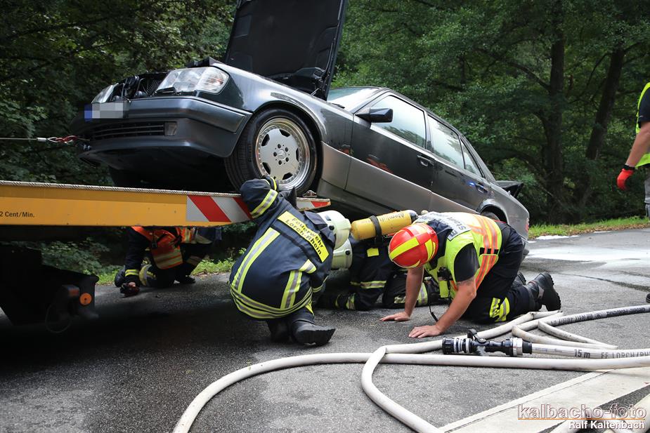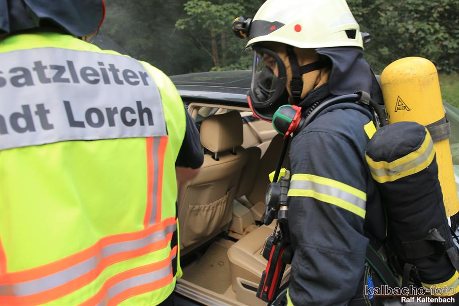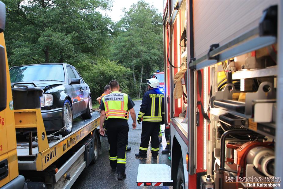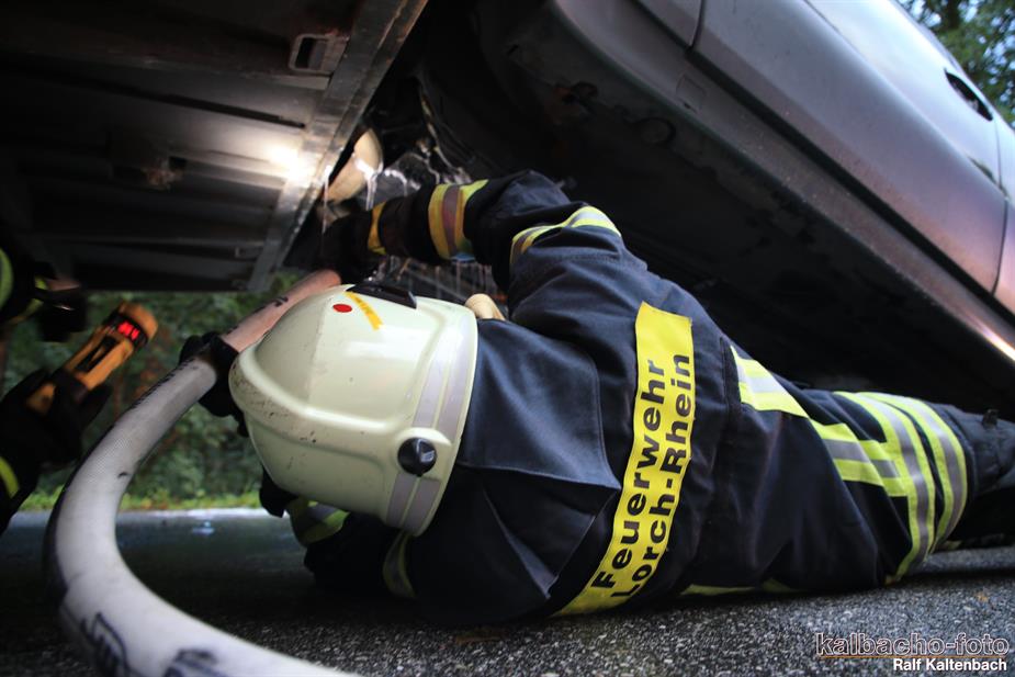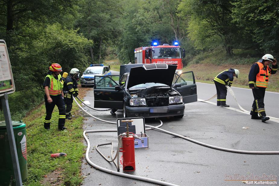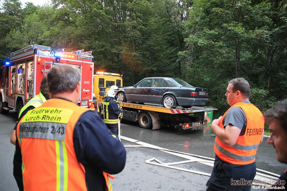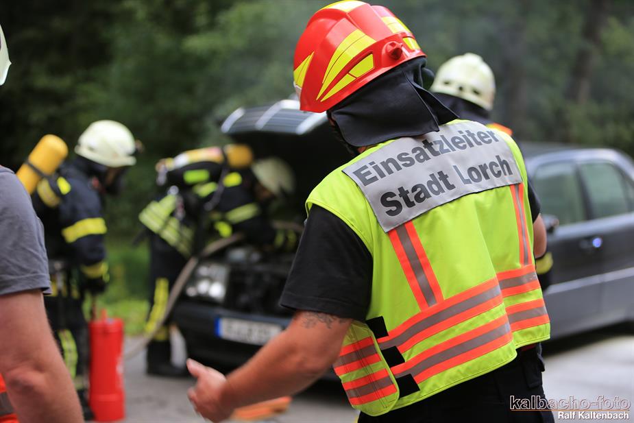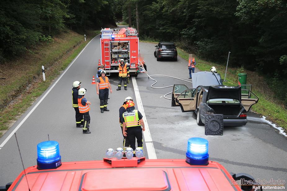 (TL) Die Feuerwehr Lorch wurde zu einem Pkw Brand ins Wispertal gerufen. Das Feuer wurde mit einem C Rohr gelöscht.