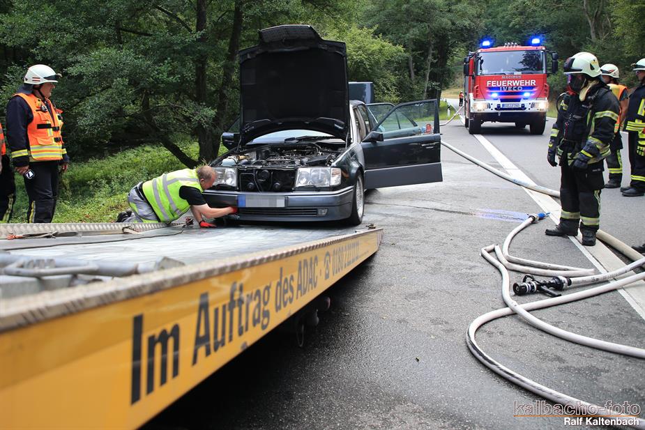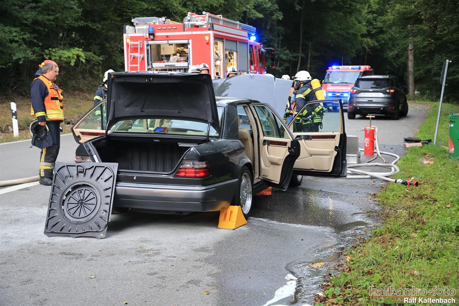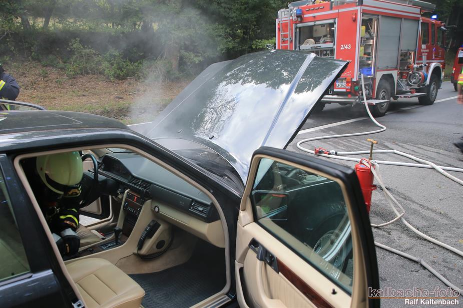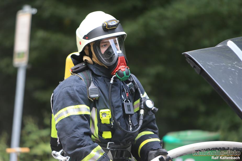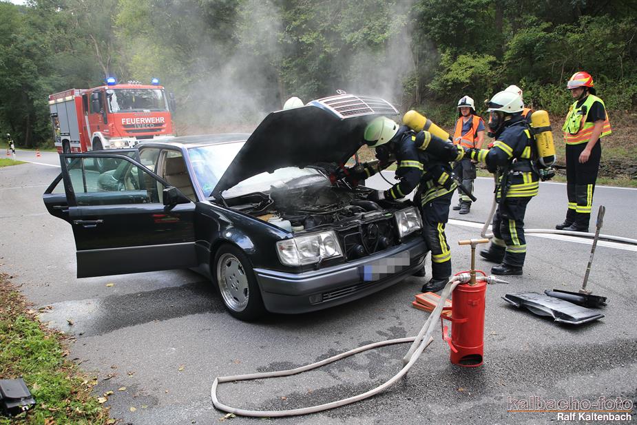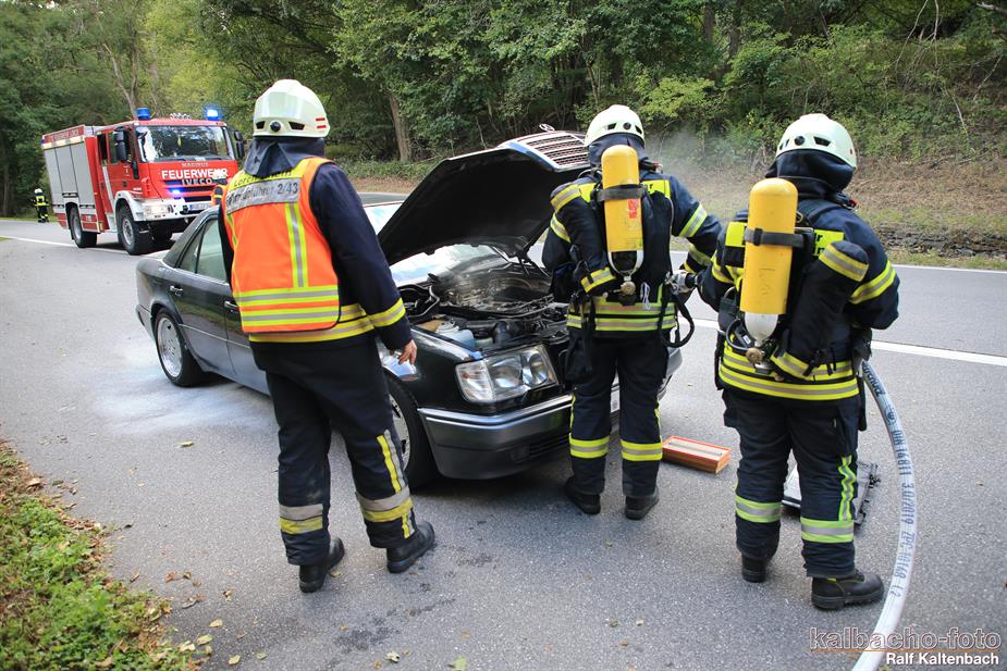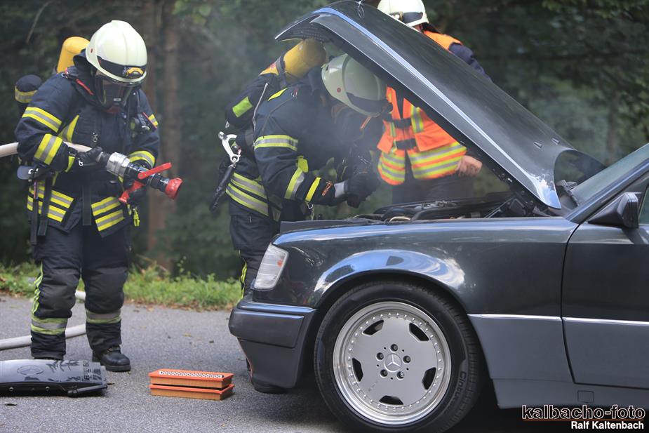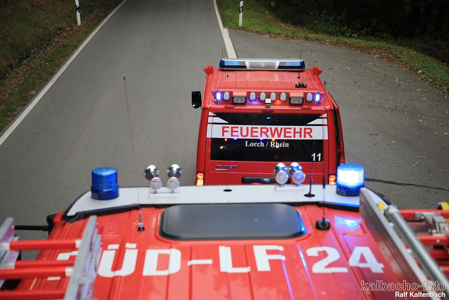 (TL) Die Feuerwehr Lorch wurde zu einem Pkw Brand ins Wispertal gerufen. Das Feuer wurde mit einem C Rohr gelöscht.