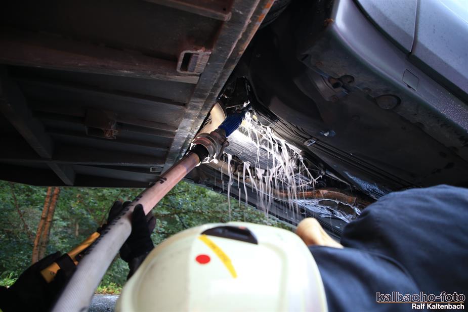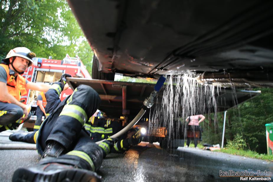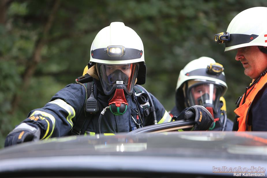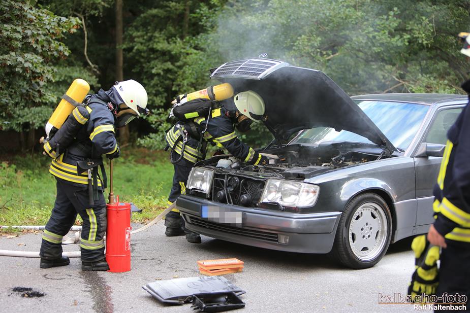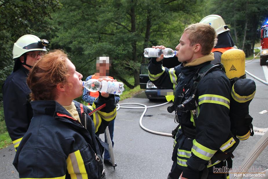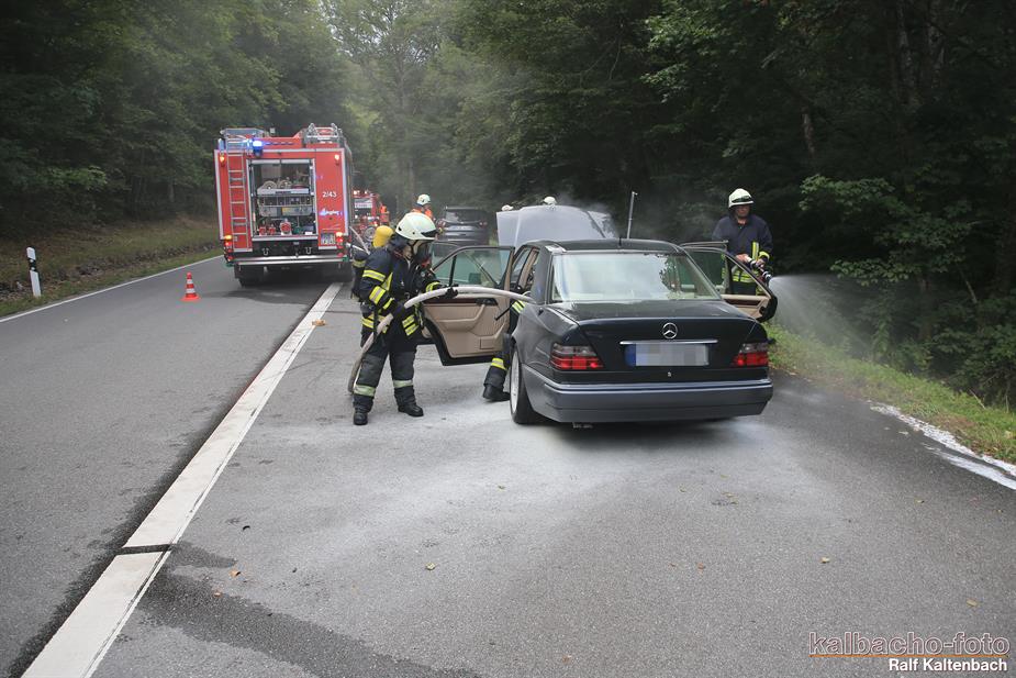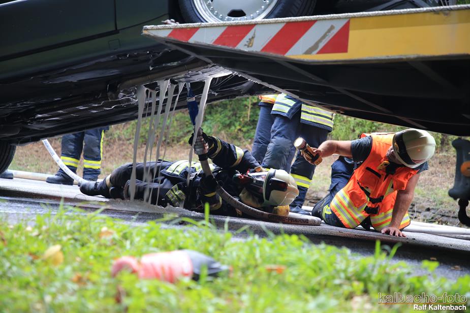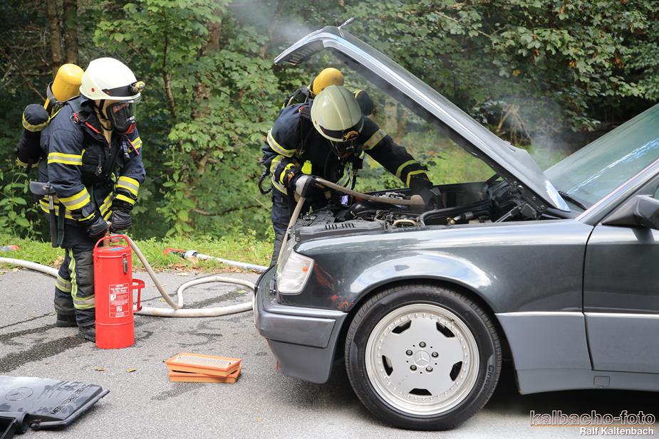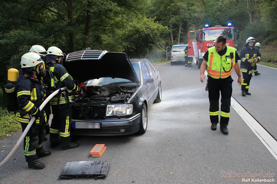 (TL) Die Feuerwehr Lorch wurde zu einem Pkw Brand ins Wispertal gerufen. Das Feuer wurde mit einem C Rohr gelöscht.
