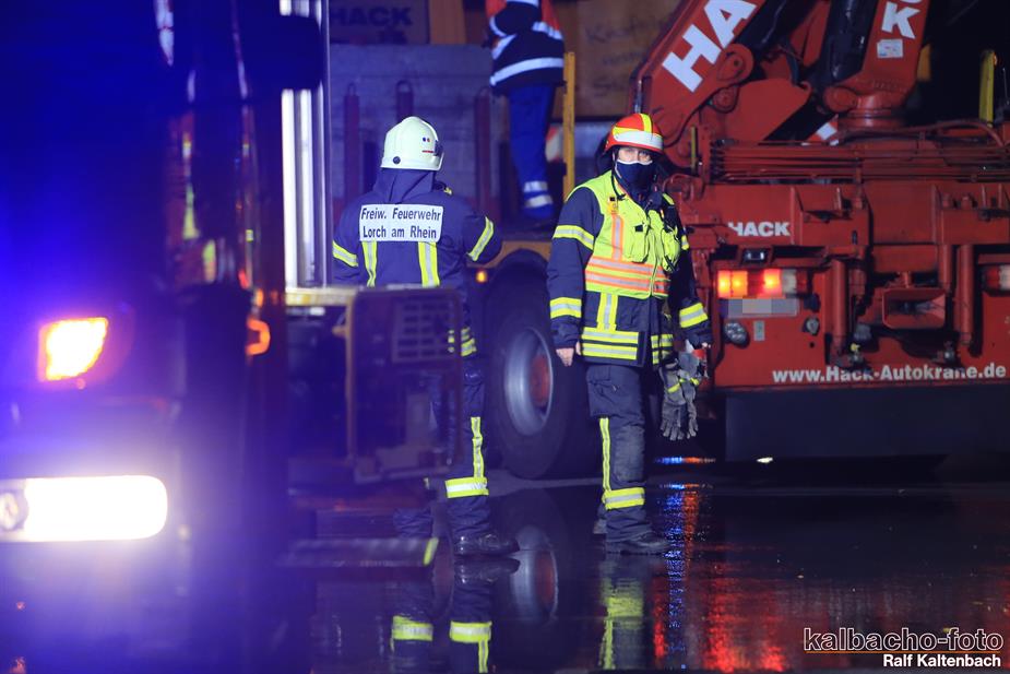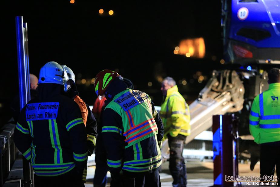 (TL) Die Feuerwehr Lorch wurde zur Unterstützung des WSA alarmiert. Es musste eine Einsatzstelle ausgeleuchtet werden.