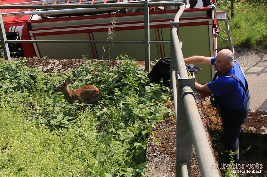 Offizieller Einsatzbericht der FF-Lorch (TL) Die Feuerwehr Lorch wurde zu einem Tier in Notlage alarmiert. Ein Rehkitz war im Regenrückhaltebecken gefangen undkonnte sich nicht aus eigener Kraft befreien