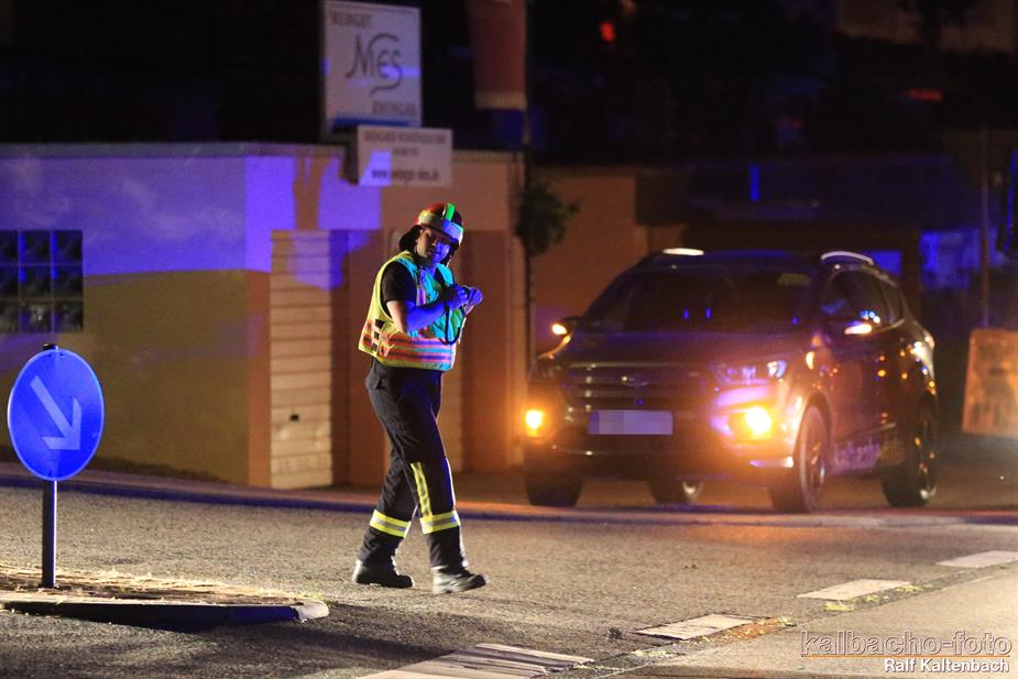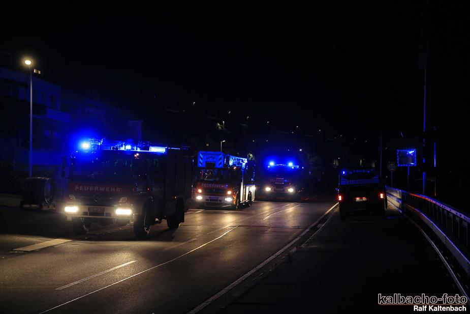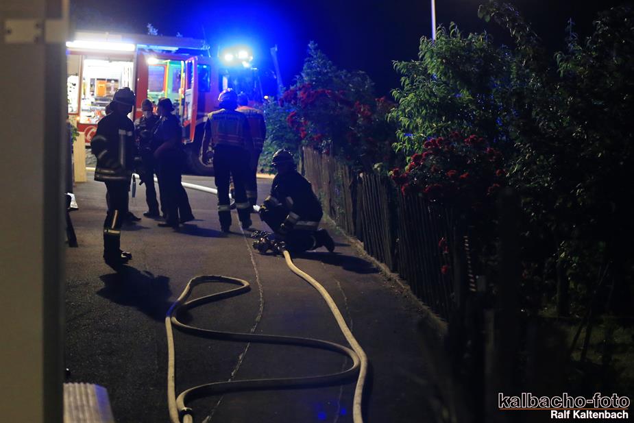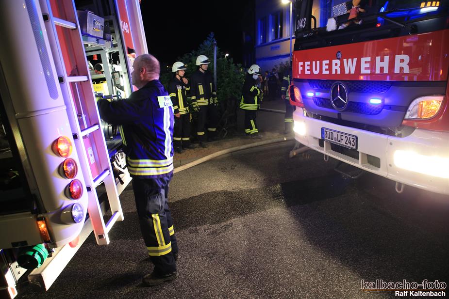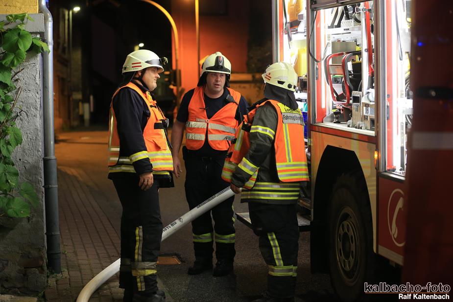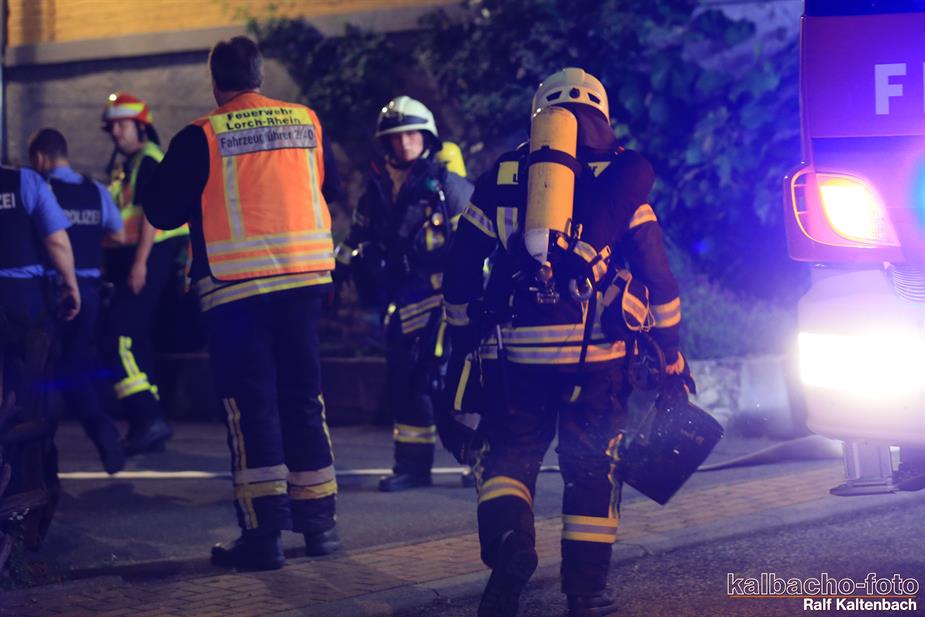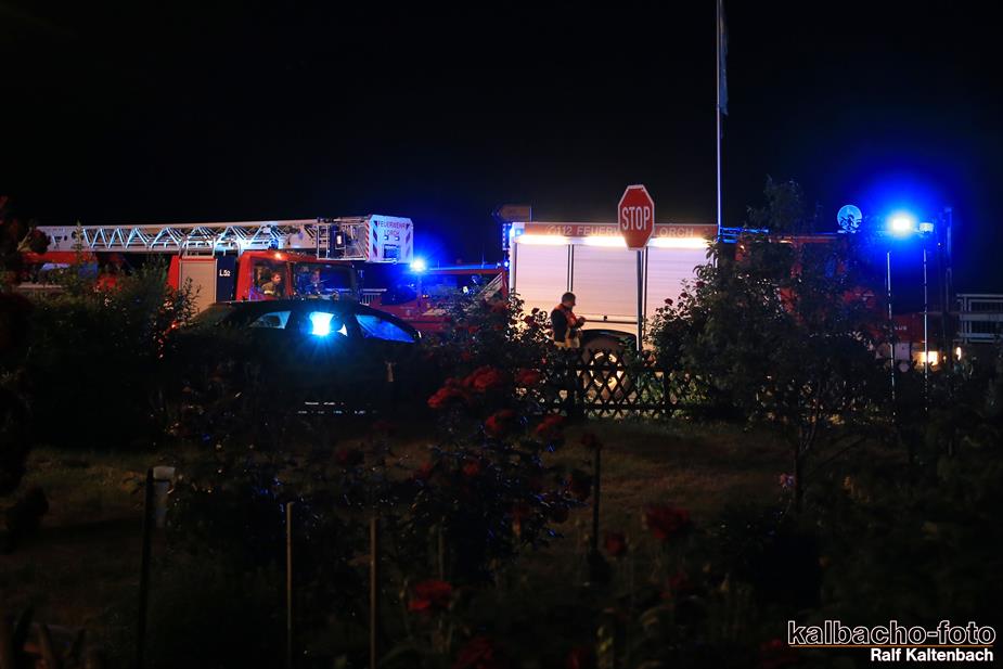 Feuerschein am Gebäude nach Lorchhausen alarmiert.