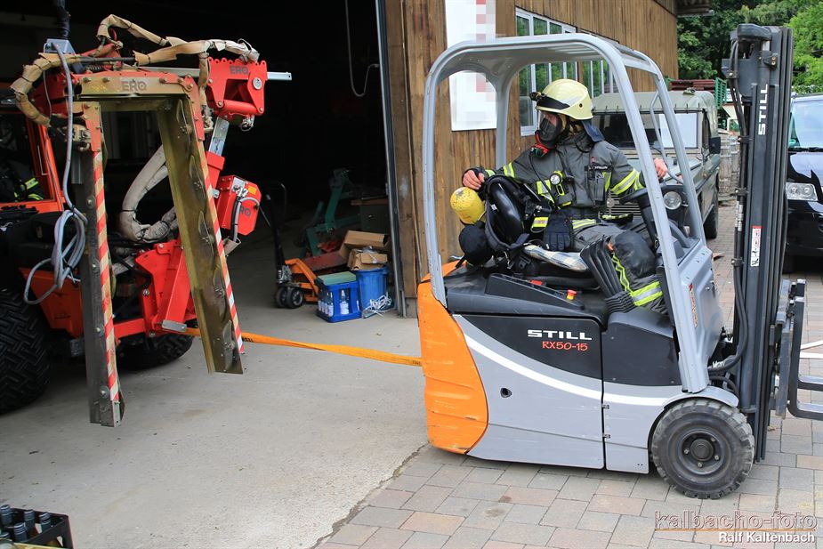 Die Halle wurde belüftet und der Traktor ins freie gefahren.