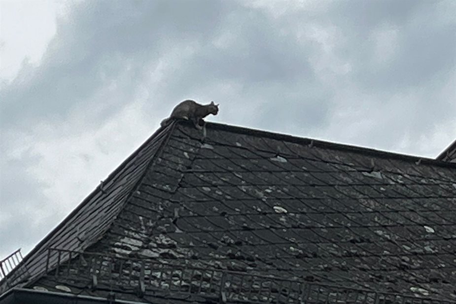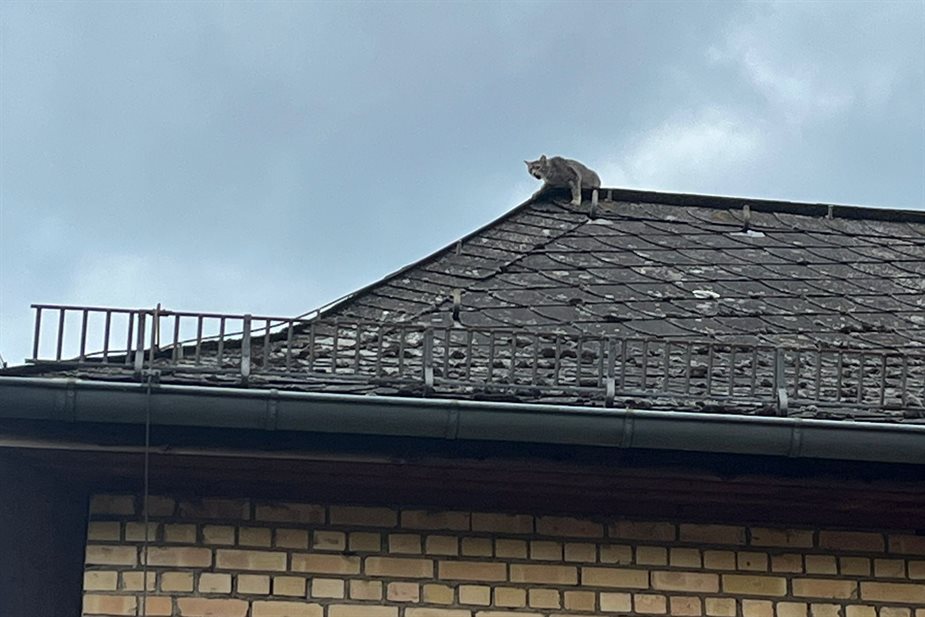 Eine Katze saß auf einem Mehrgeschossigen Haus fest und machte