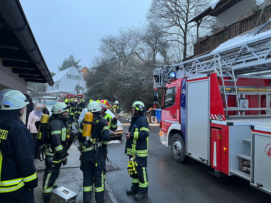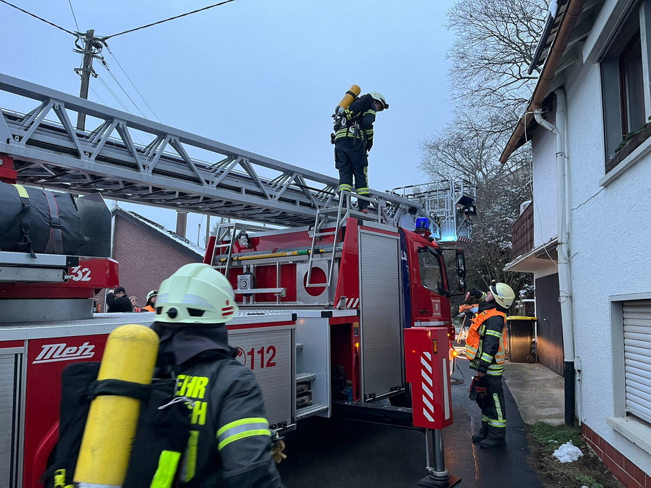 Über die Drehleiter und Löscharbeiten im Gelände wurden insgesamt 6